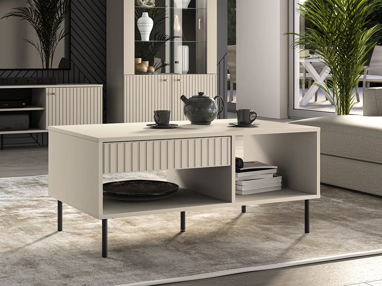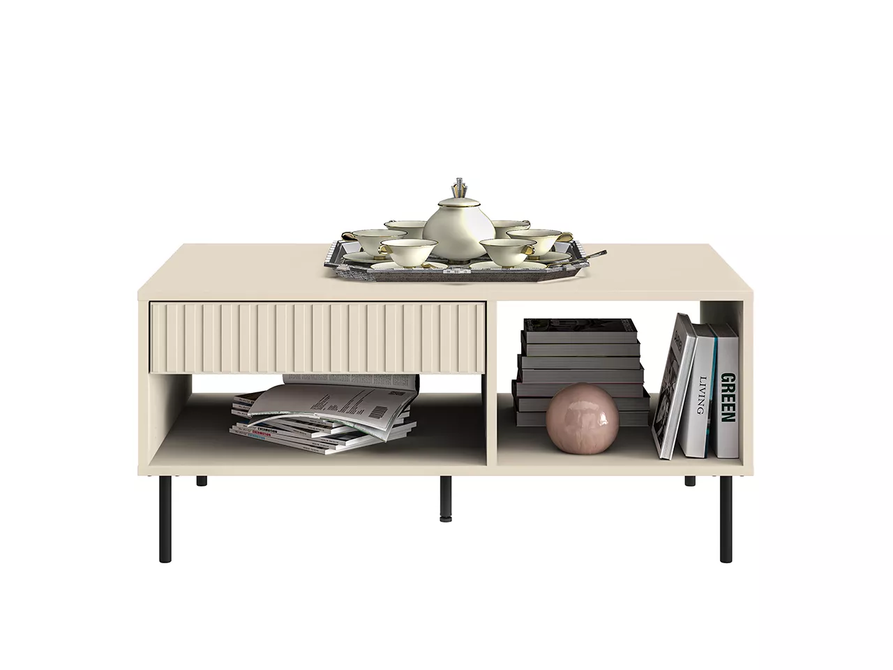 Konferenční stolek FAREL je stylovým a funkčním doplňkem moderního obývacího pokoje. Díky prostorné skřínce a poličce snadno uschováte všechny potřebné předměty. Vysoké nožky dodávají stolku pevnou stabilitu.