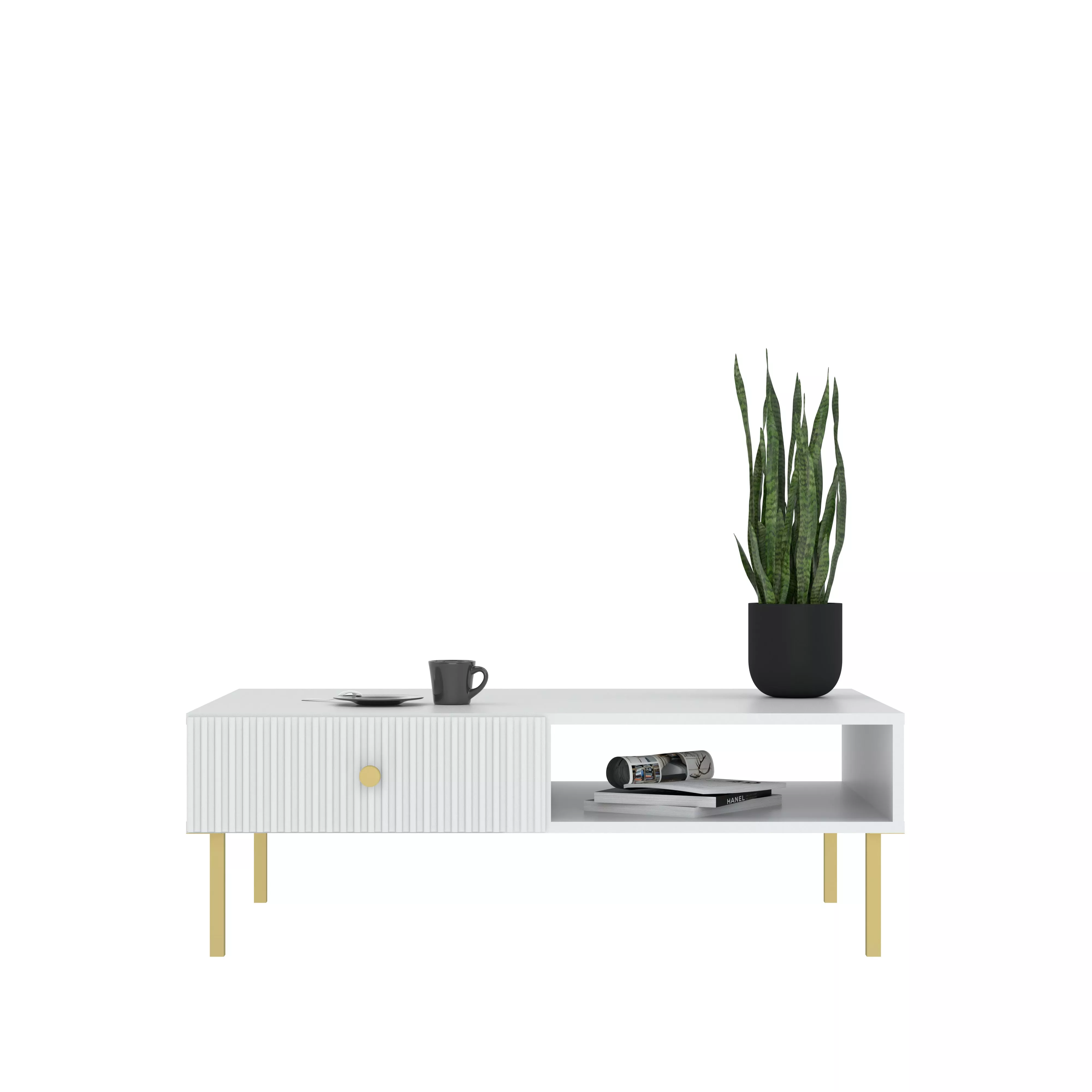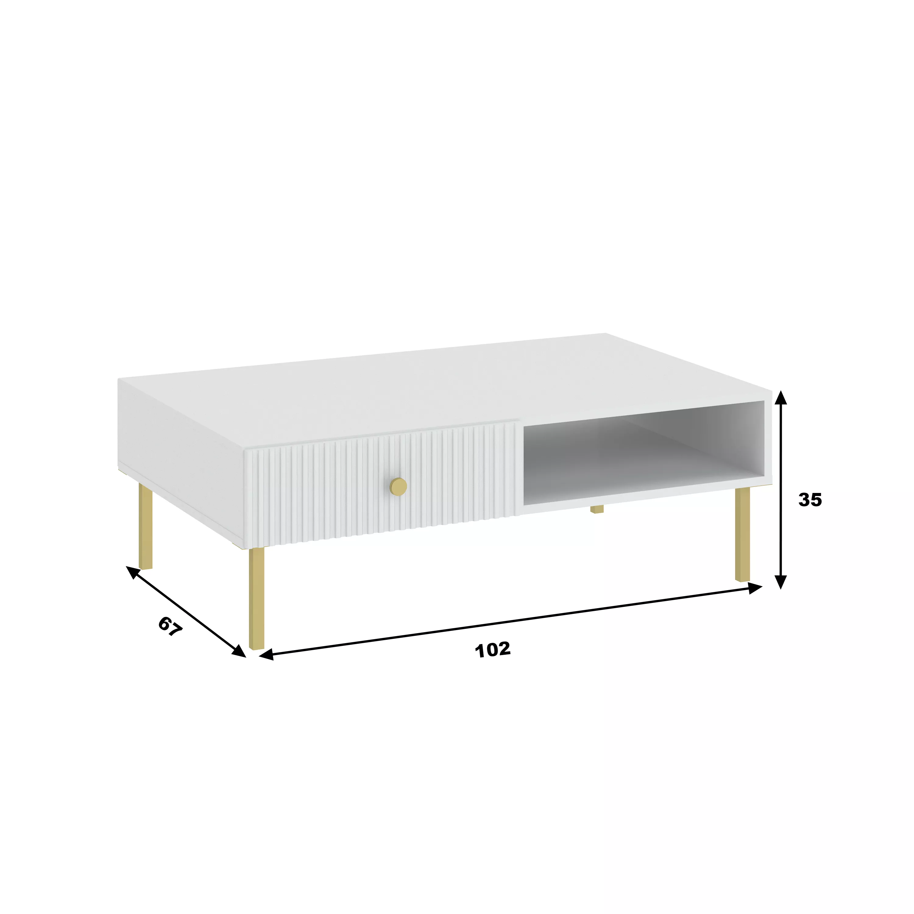 Zvýrazněte kouzlo obývacího pokoje se stylovým konferenčním stolkem HASKEL, který nabízí ideální kombinaci estetiky a funkčnosti. Stolek je vybaven 2 praktickými zásuvkami a otevřenou policí.