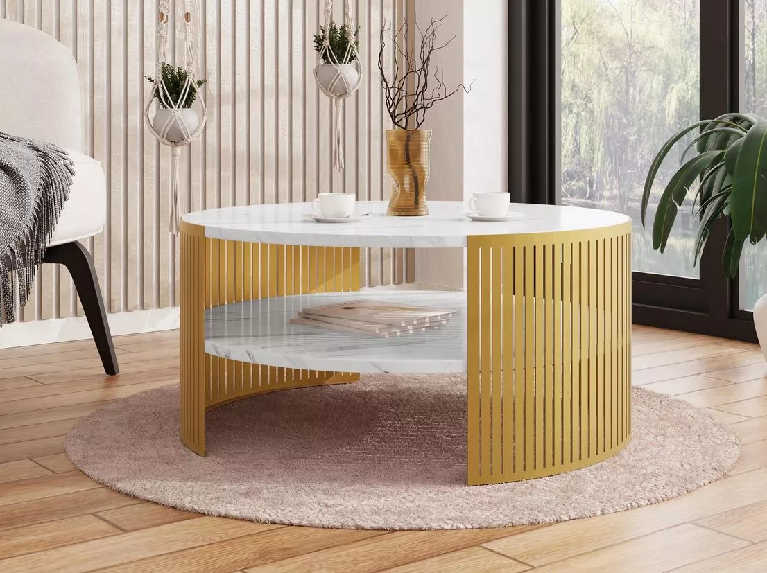 Konferenční stolek REXIO - zlatý / mramor bianco