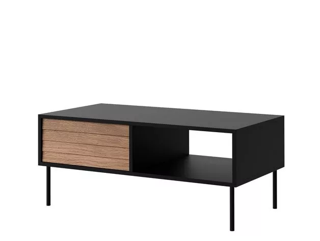 Konferenční stolek MAYKI přináší do vašeho obývacího pokoje moderní styl a funkčnost. Vybavený poličkou a skříňkou nabízí dostatek úložného prostoru pro časopisy, dálkové ovladače a další potřeby.