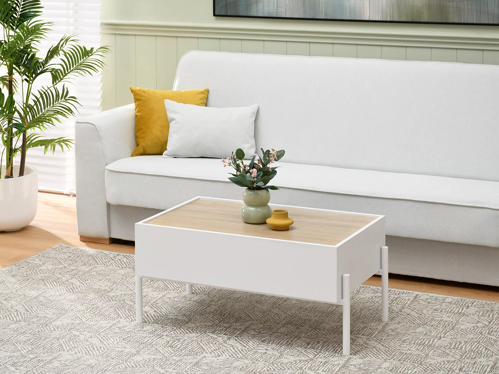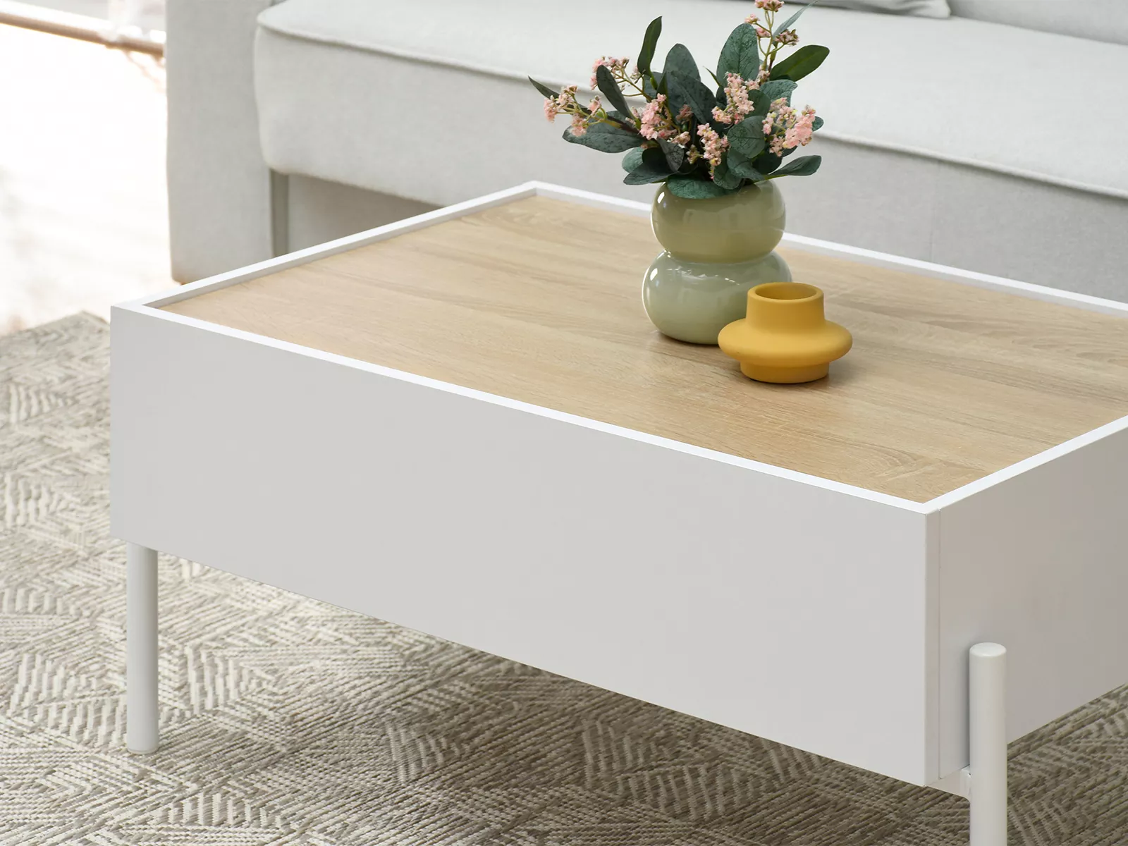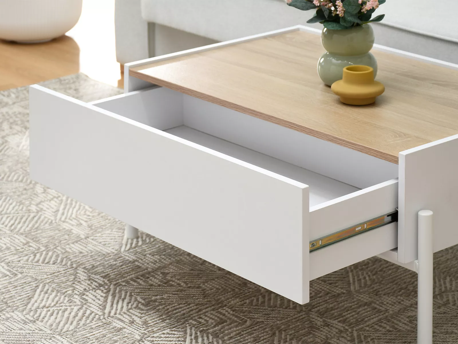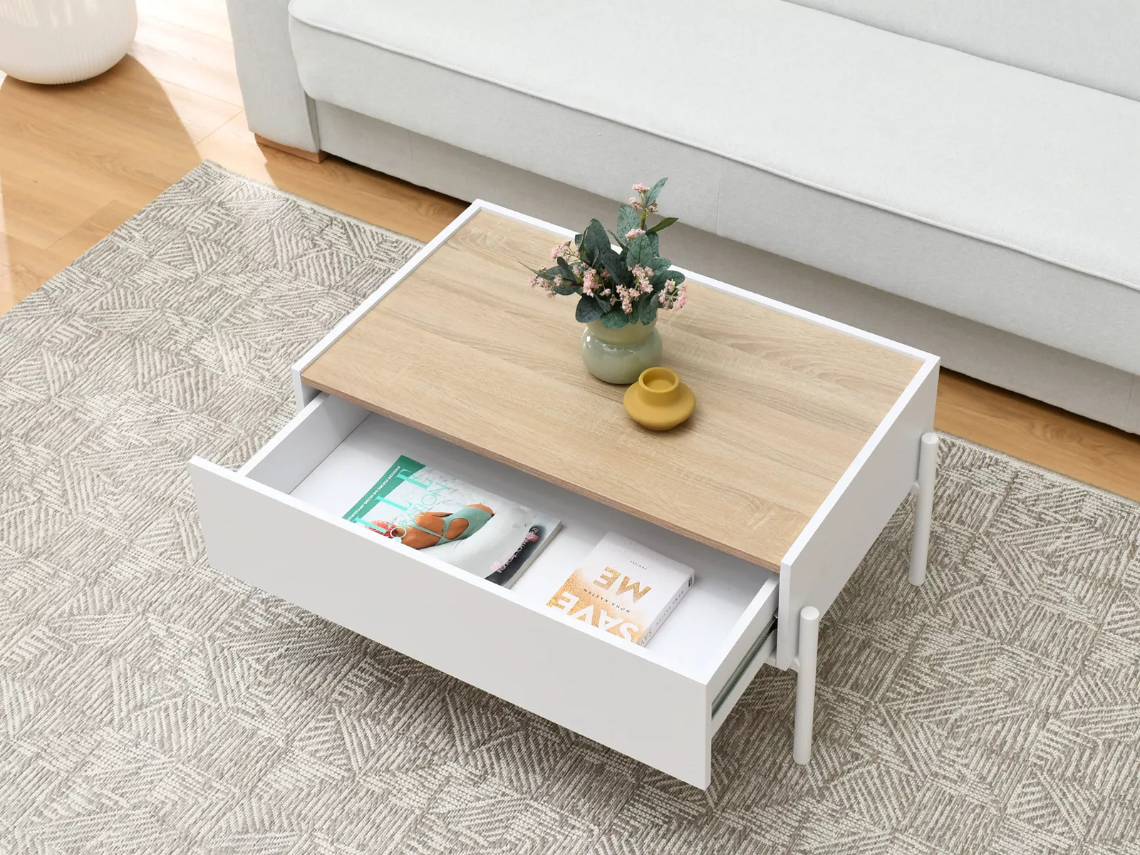 Konferenční stolek TOMAN se šuplíkem - bílý / dub sonoma