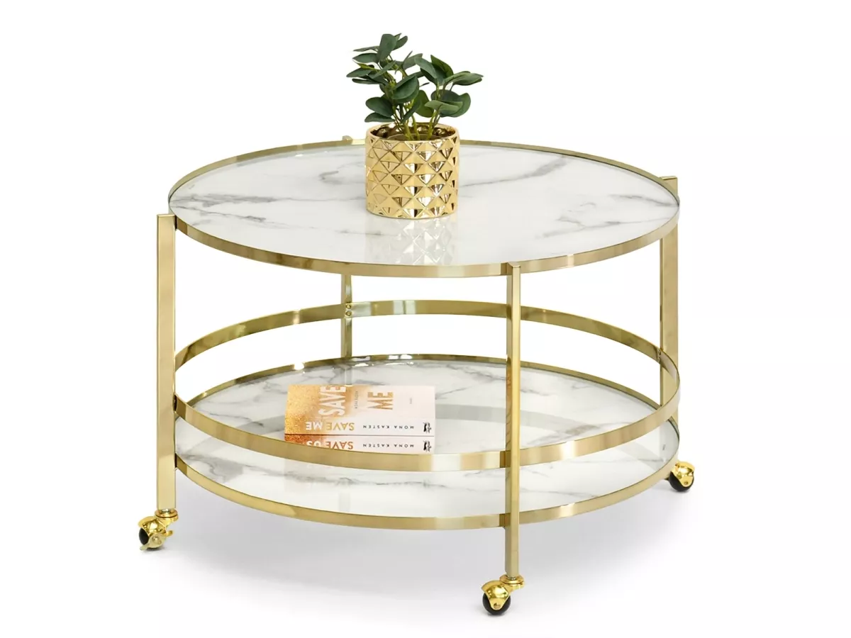 Designový konferenční stolek VITOLD se hodí především do obývacích pokojů s prvky glamour. Stolek díky kolečkám je možné lehce přesouvat z místa na místo.