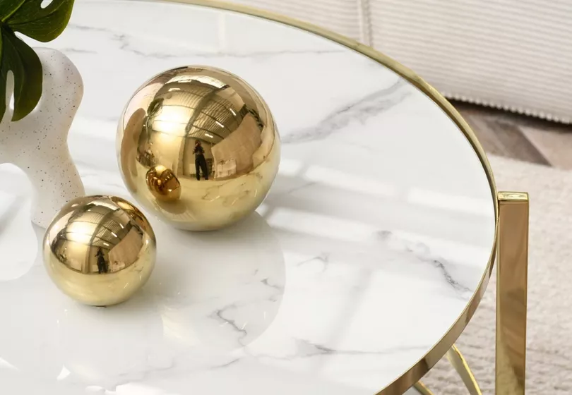 Designový konferenční stolek VITOLD - zlatý / bílý mramor