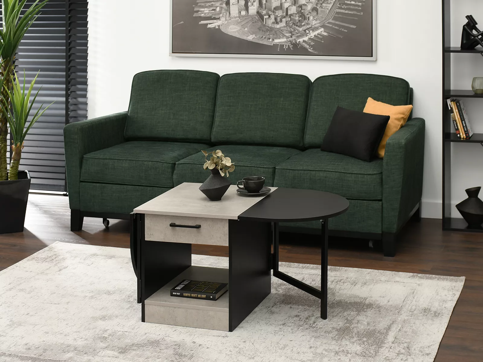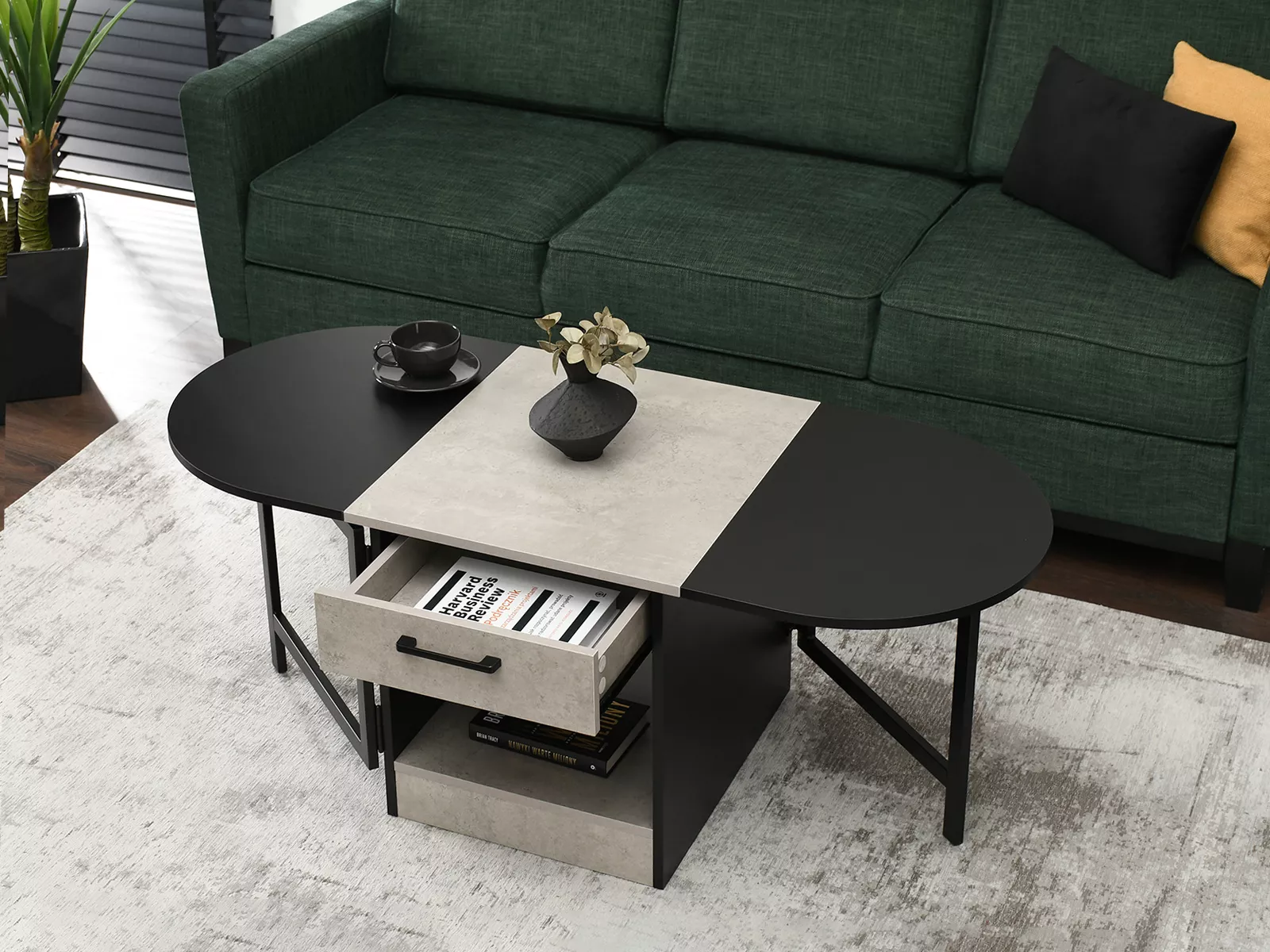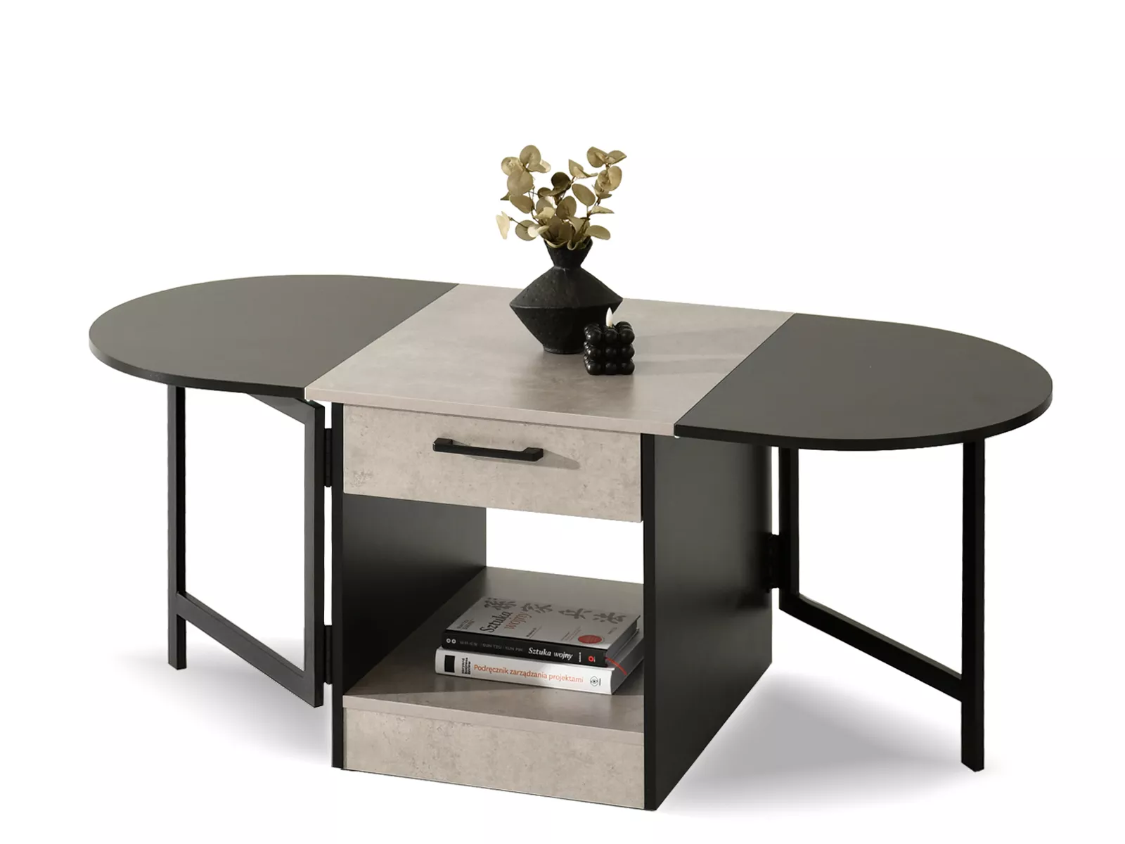 Rozkládací konferenční stolek IZAK nabízí dostatek úložného prostoru. Za zmínku určitě stojí možnost rozložení stolku.