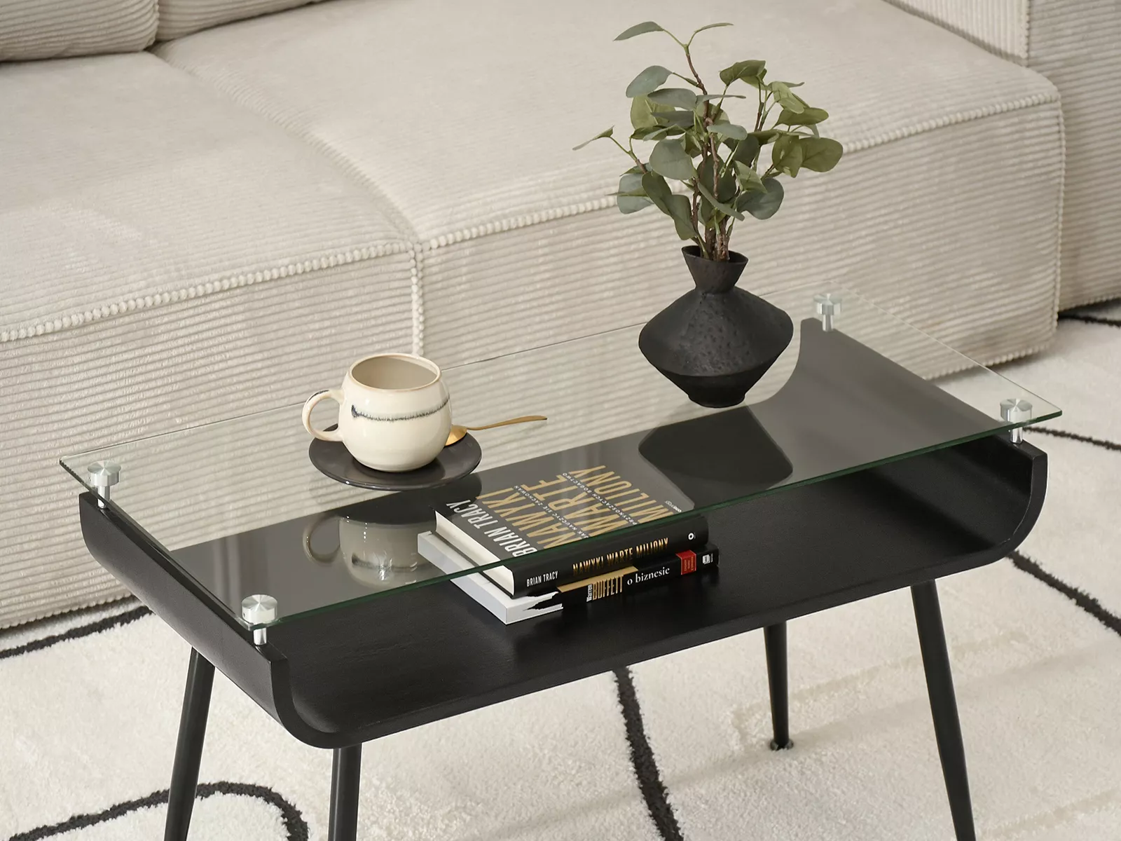 Konferenční stolek EYMEN nabízí dostatek úložného prostoru pod hlavní deskou stolu. Stabilitu zajistí solidní kovová konstrukce.