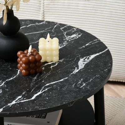 Kulatý konferenční stolek 60 TODOR - černý / černý mramor