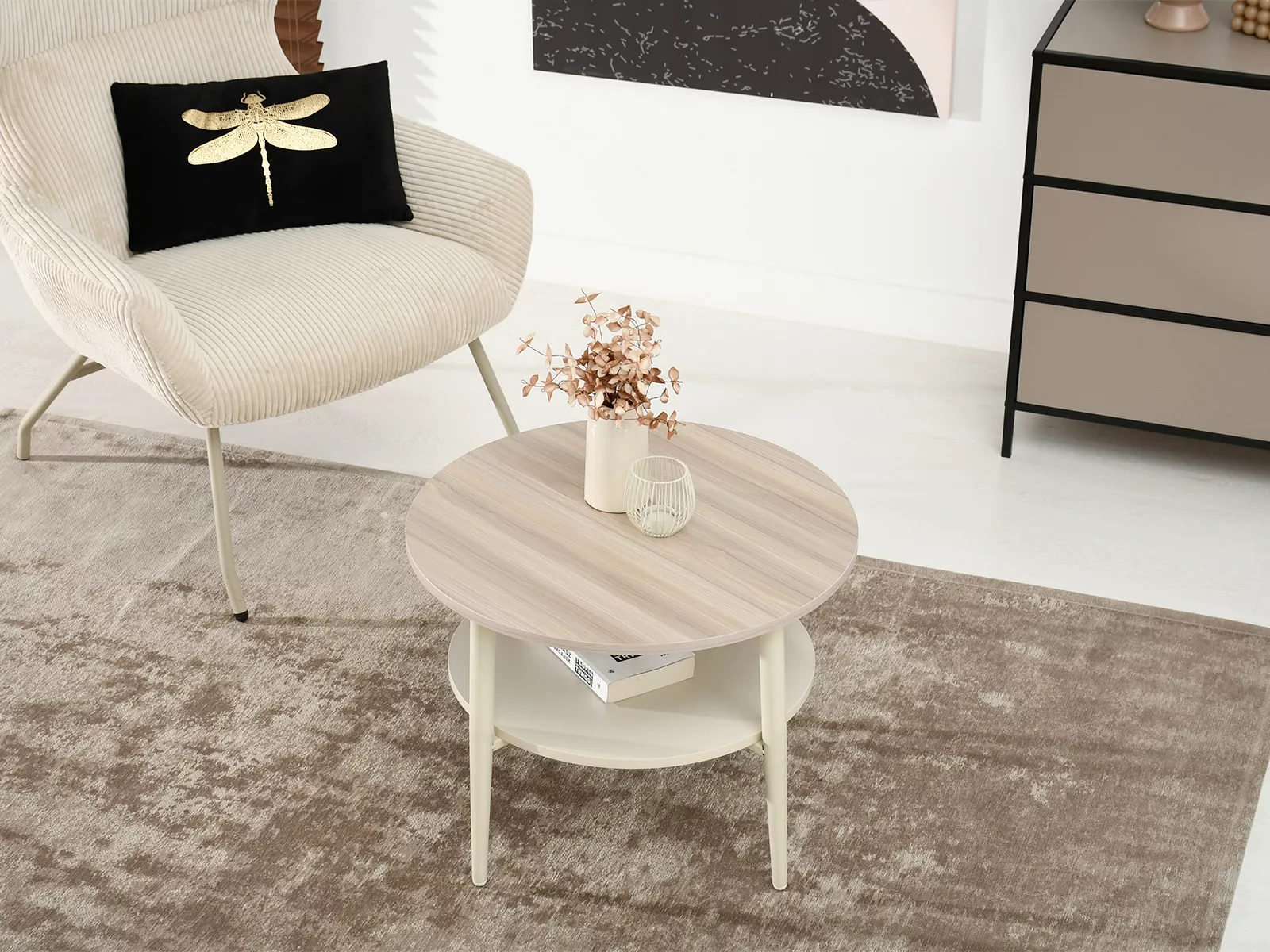 Kulatý konferenční stolek 60 TODOR - krémový / béžový jasan