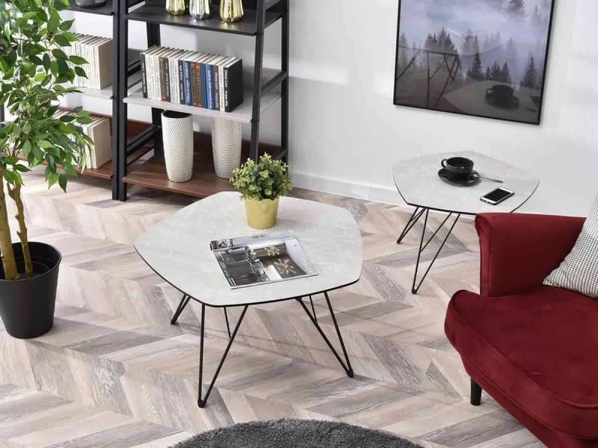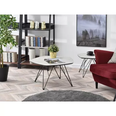 Konferenční stolek ANIEL nabízí spoustu prostoru k odložení nápojů, ovladače, novin nebo knih. Designové kovové nohy dodávají stolku stabilitu.