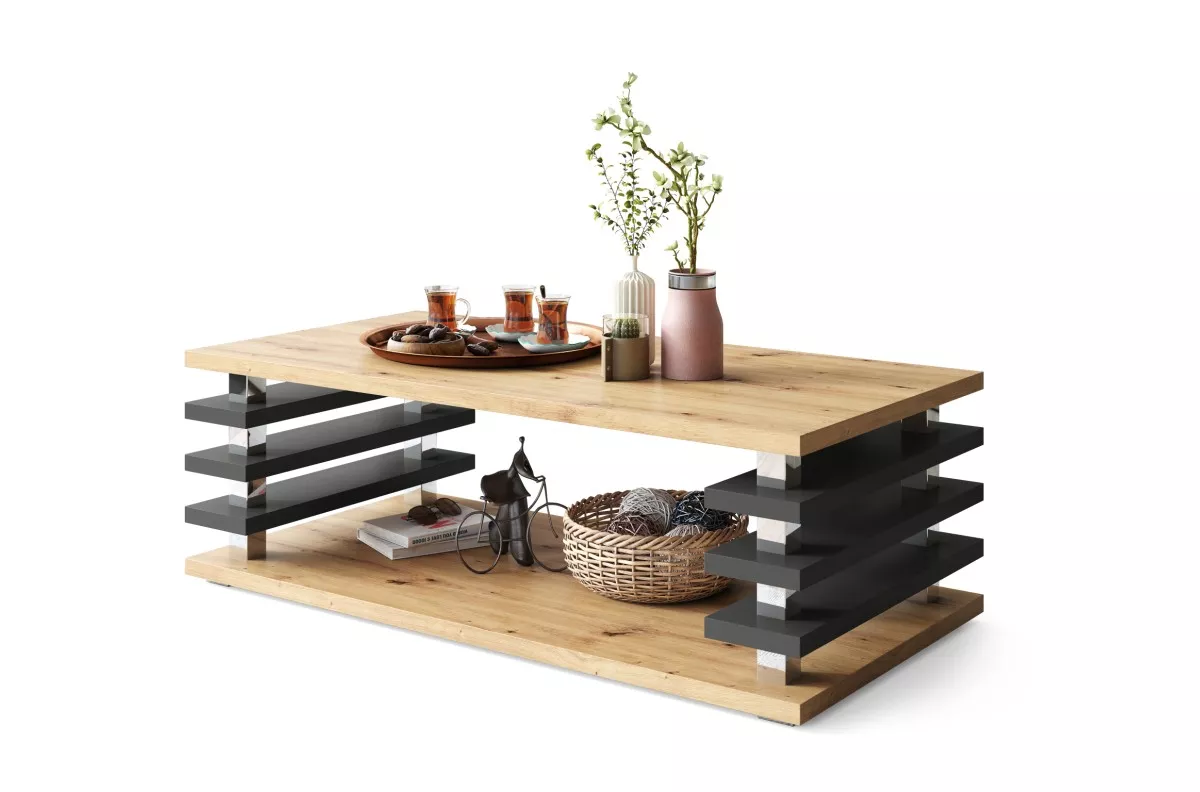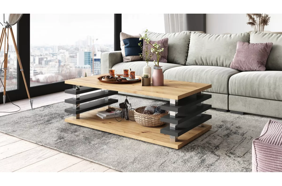 VÝPRODEJ - Konferenční stolek s lamelami BOGARD - dub artisan / černý