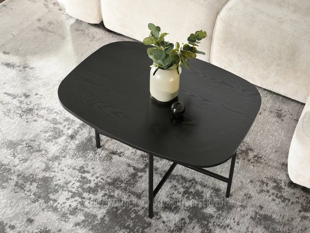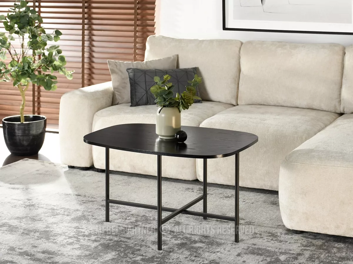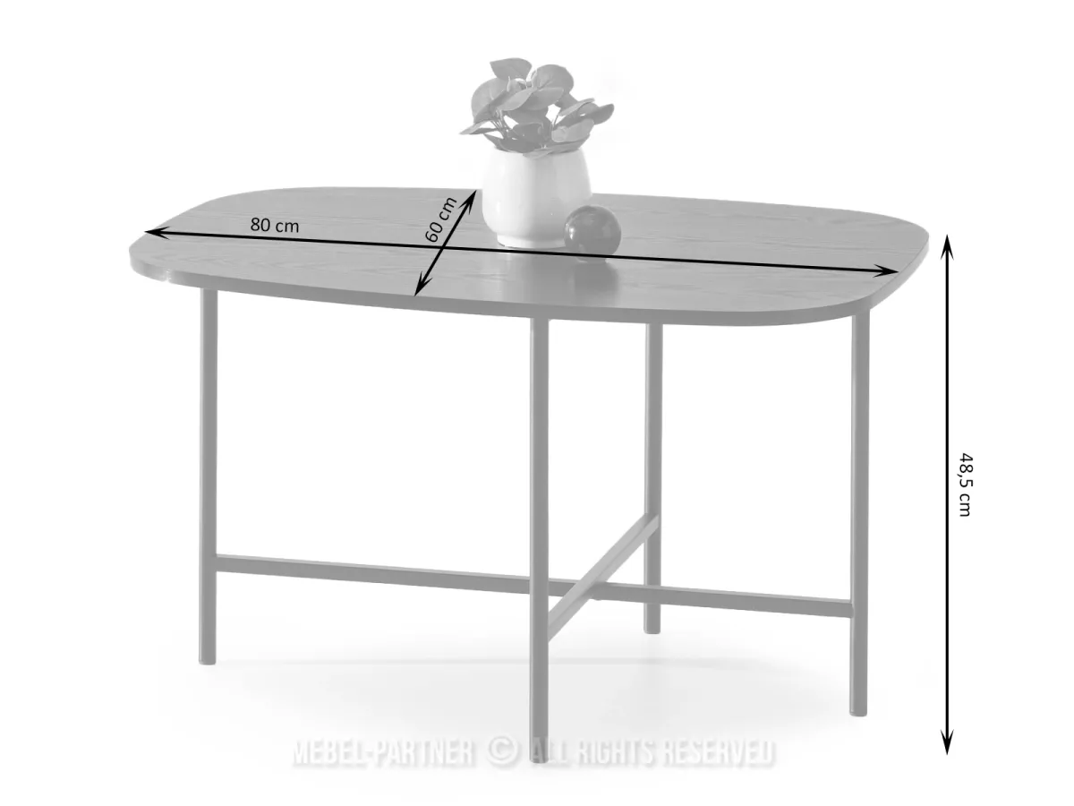 Minimalistický konferenční stolek RAEL se díky svým rozměrům vejde i do menších obývacích pokojů. Stabilitu stolku podtrhuje kovová konstrukce.