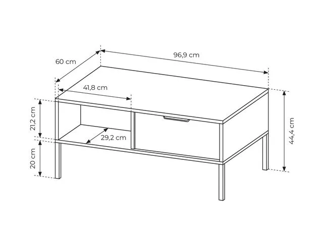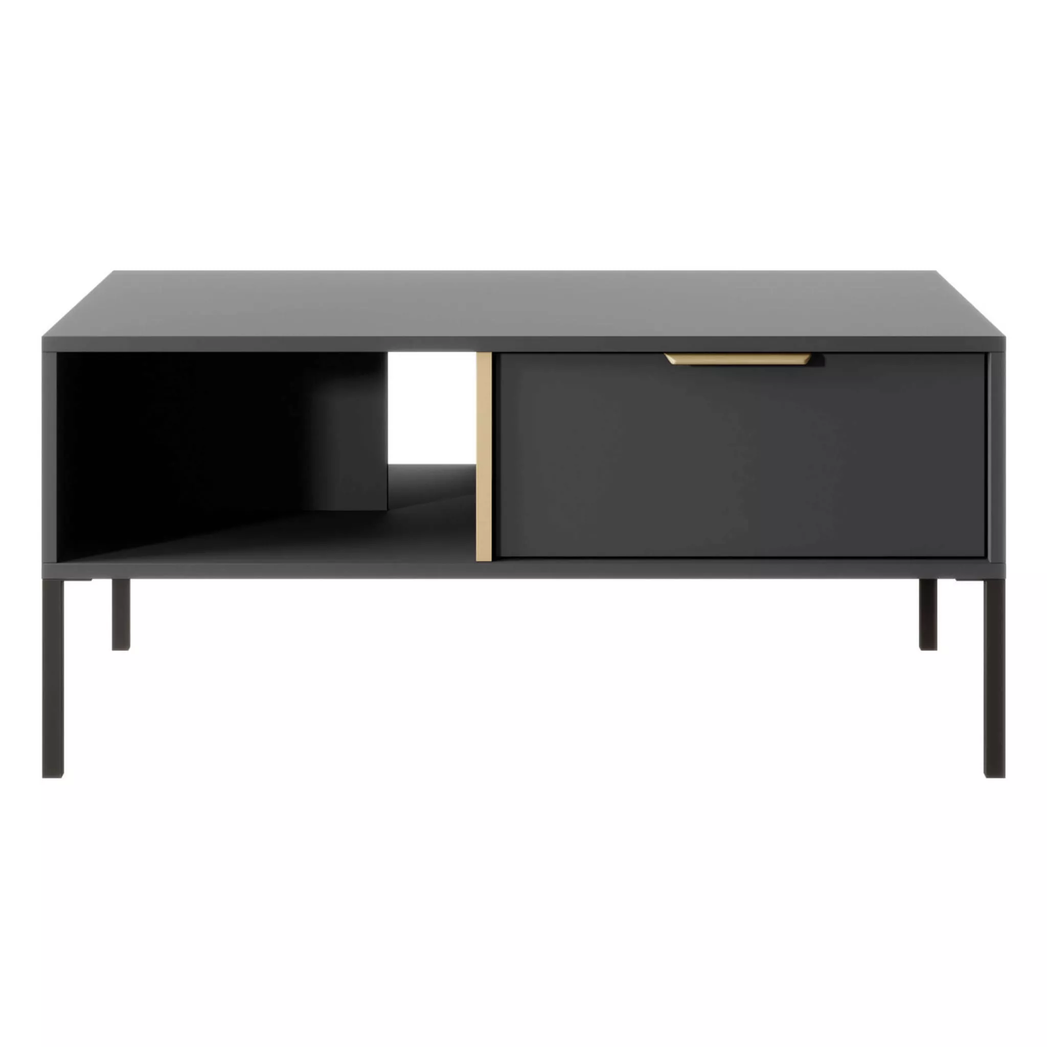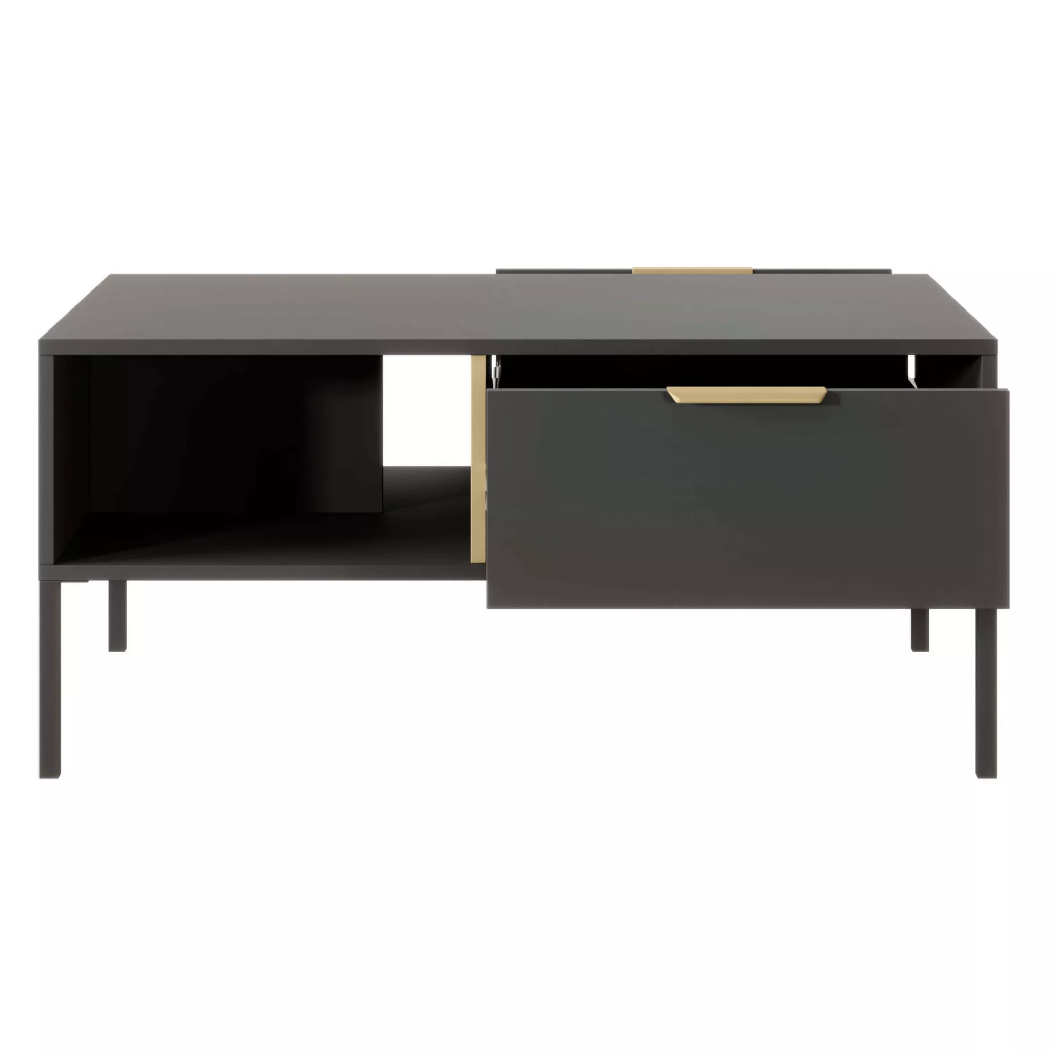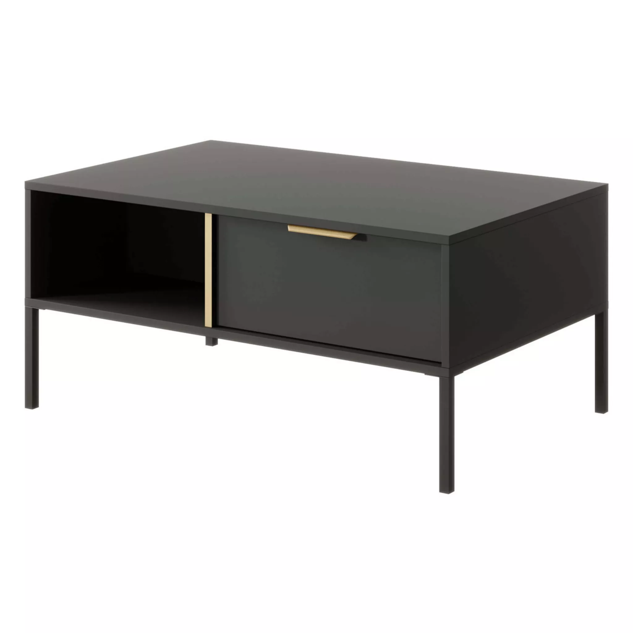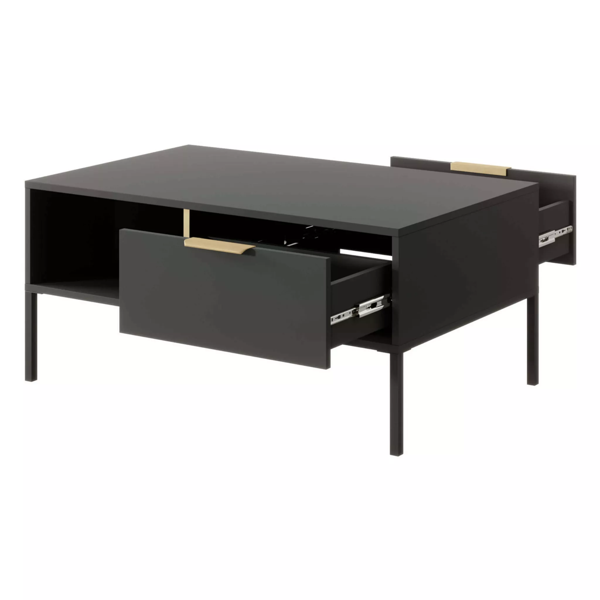 Konferenční stolek HARTSELE je mozaikou vkusu, stylu a elegance, která osloví i ty nejnáročnější zákazníky. Antracitová barva je obohacena o zlatou ABS hranu a zlaté úchytky, které stolku dodávají luxusní vzhled a jedinečný charakter. Polička a 2 zásuvky na každé straně poskytují dostatek prostoru pro odložení věcí, které chcete mít po ruce.