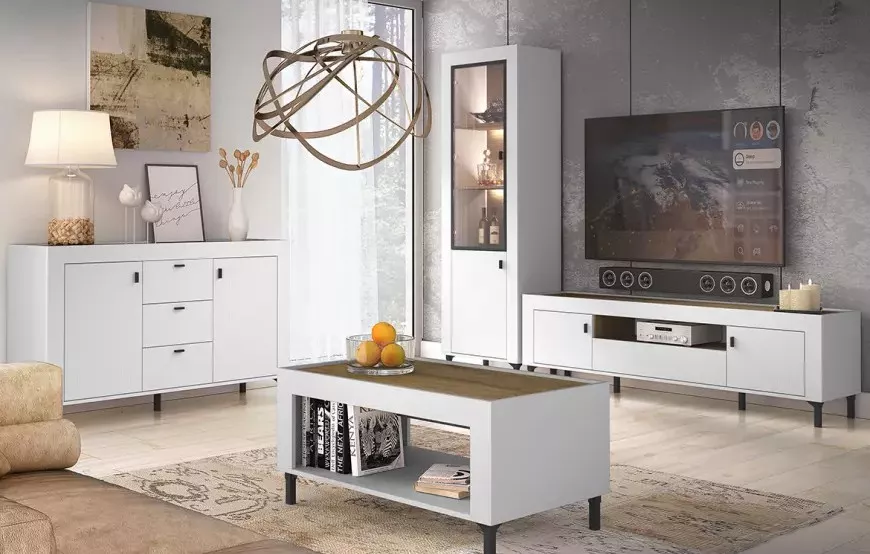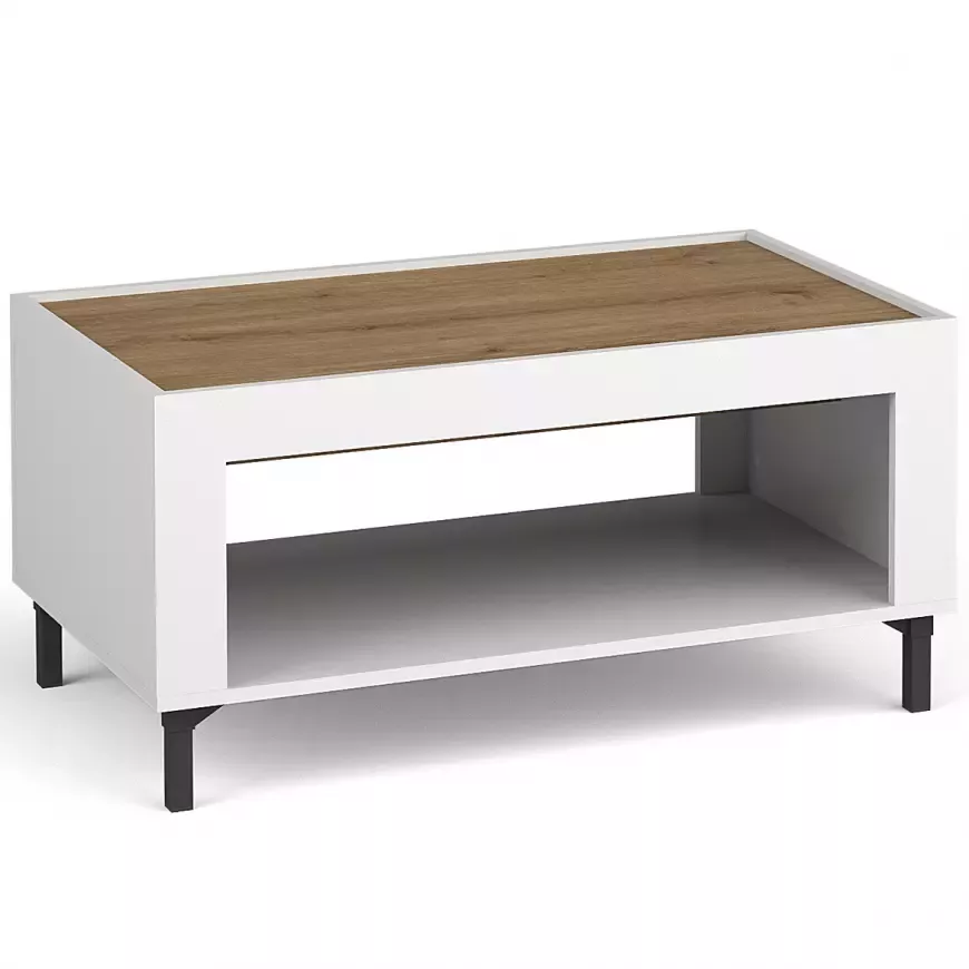Konferenční stolek AUROVA zpříjemní každý moment odpočinku. Prostorná horní deska v dekoru dubu nabídne místo na odložení nápojů a občerstvení. Otevřená police přístupná z obou stran usnadní každodenní používání.
