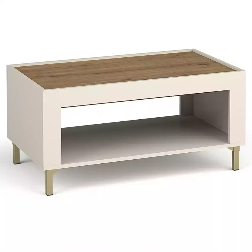 Konferenční stolek AUROVA zpříjemní každý moment odpočinku. Prostorná horní deska v dekoru dubu nabídne místo na odložení nápojů a občerstvení. Otevřená police přístupná z obou stran usnadní každodenní používání.