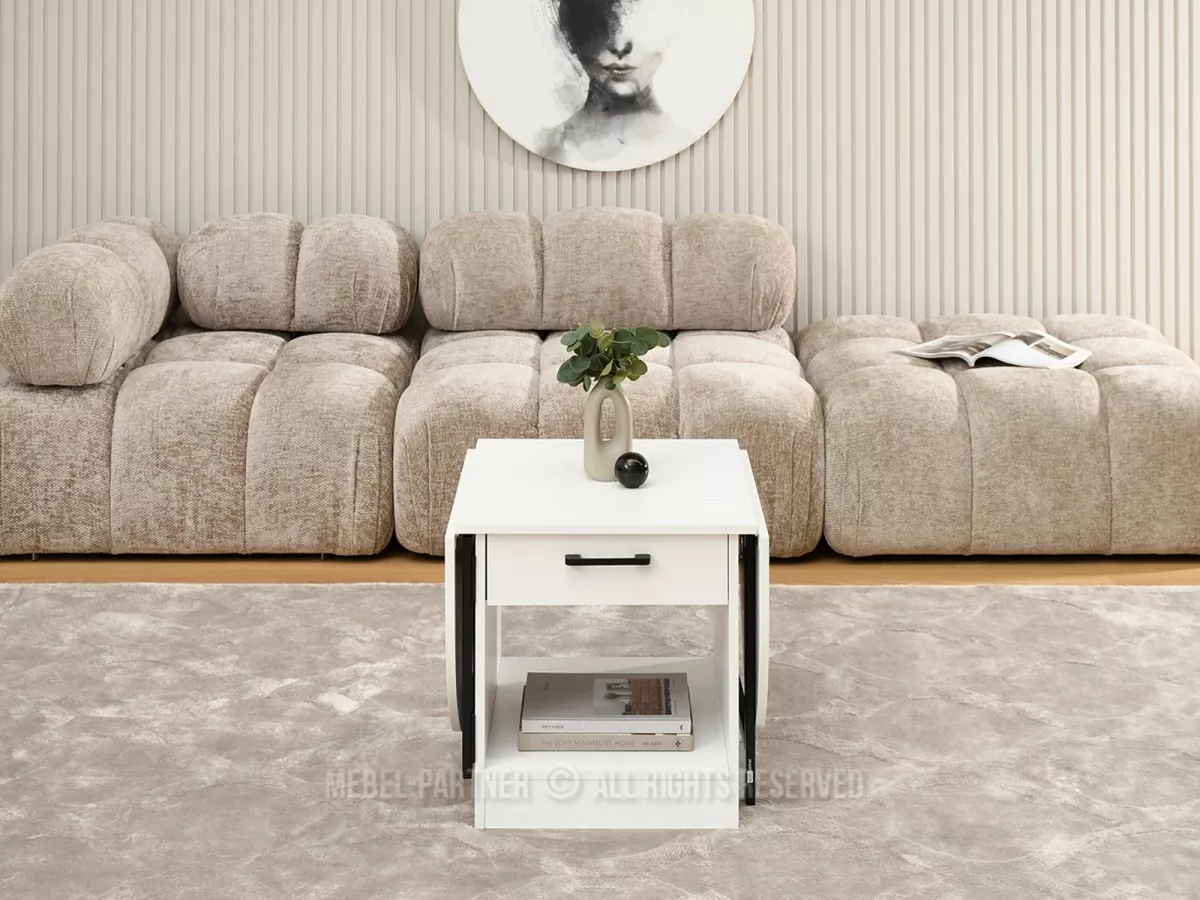 Rozkládací konferenční stolek IZAK skvěle zapadne do každého interiéru a dodá mu eleganci a styl. Nábytek si můžete přizpůsobit svým potřebám tak, že rozložíte 1 desku, 2 nebo necháte obě složené.