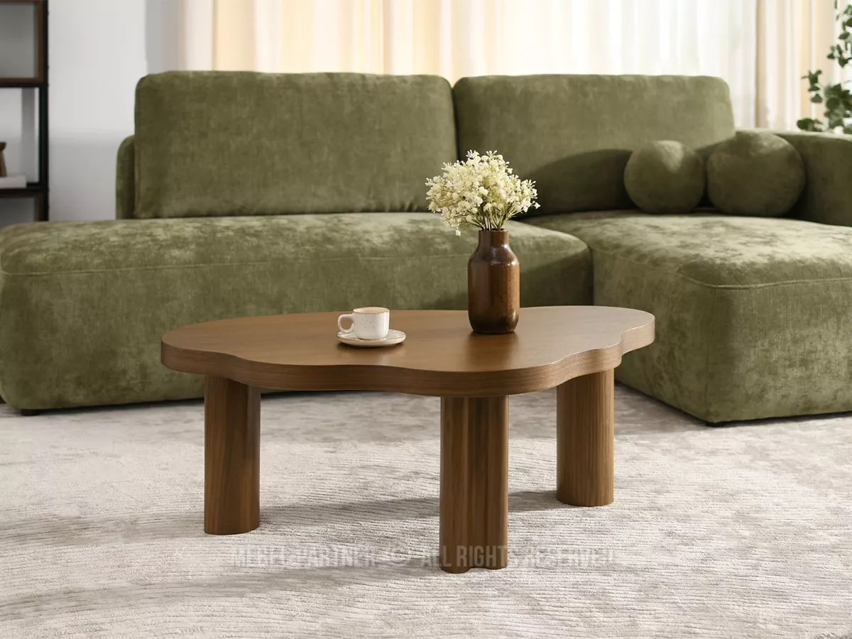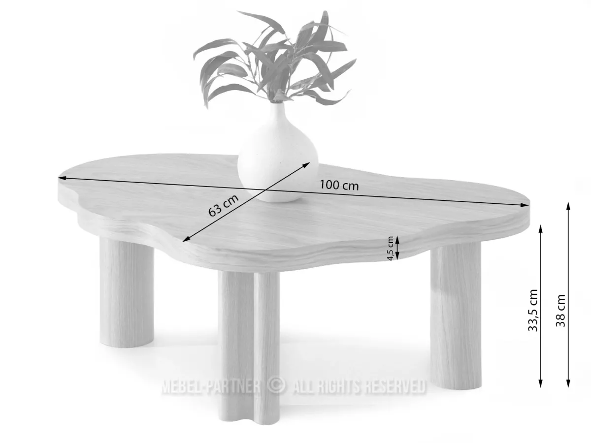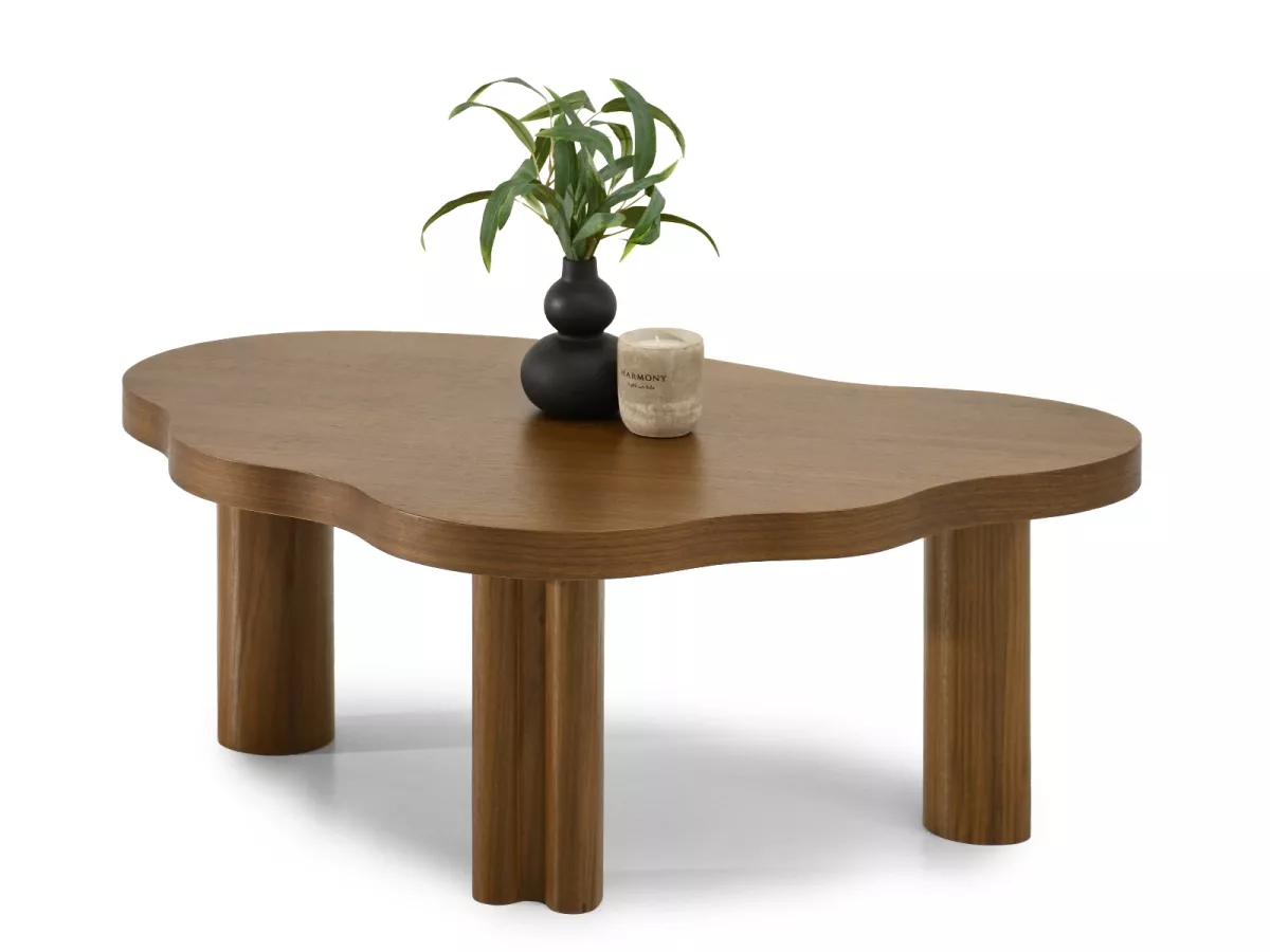Konferenční stolek ZEVO ozvláštní svým atypickým designem každý obývací pokoj. Dekor ořechu navíc dodá interiéru přírodní charakter.