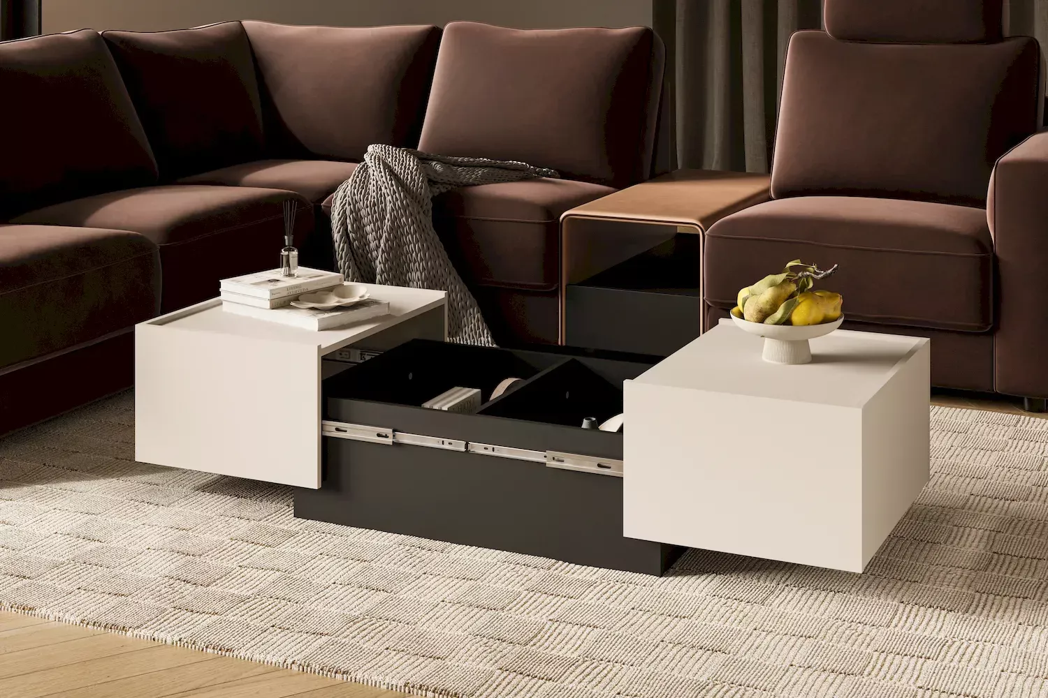 Rozkládací konferenční stolek DENALI se stane ideálním kusem nábytku do vašeho obývacího pokoje. Díky rozkládací funkci stolek nabízí úložný prostor, kde můžete schovat věci, které nechcete mít na očích.