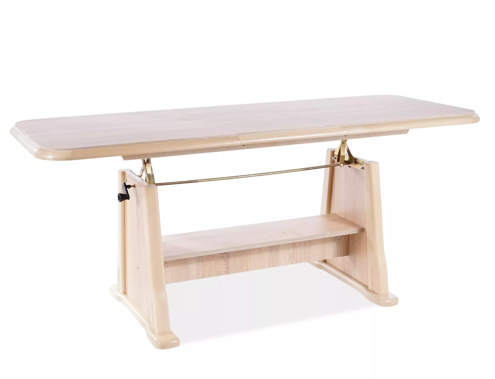 Rozkládací konferenční stolek METOD bude ideálním kusem nábytku při všech větších návštěvách. Stolek disponuje rozkládací funkcí, ale také výškově nastavitelnou funkcí. Navíc se pod horní deskou nachází praktická police pro odložení novin nebo ovladače.