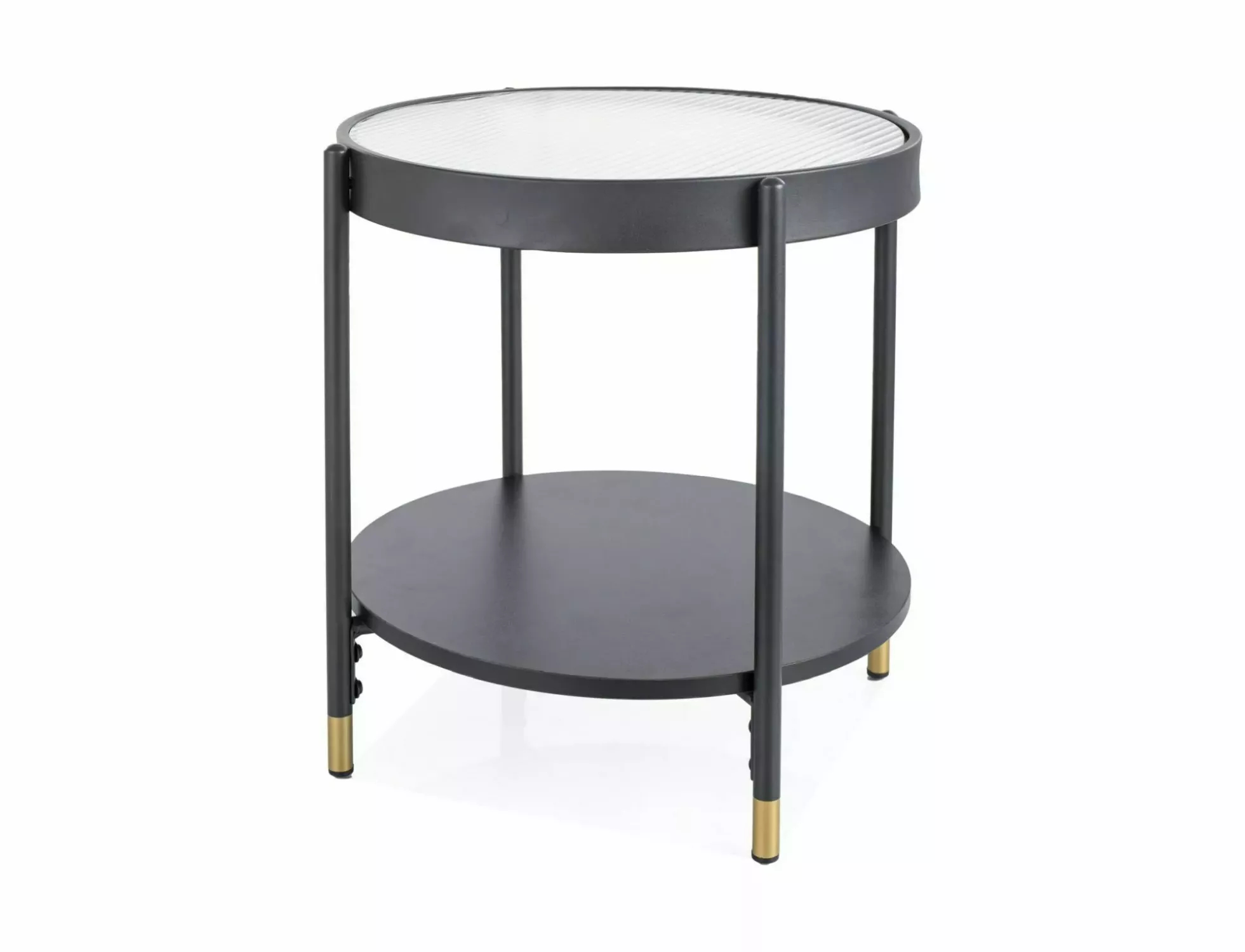 Kulatý konferenční stolek EFRAIM je díky svým rozměrům vhodný i do menších obývacích pokojů. Disponuje policí pod horní deskou, kde můžete odložit TV program nebo ovladač. Může posloužit také jako odkládací stolek.