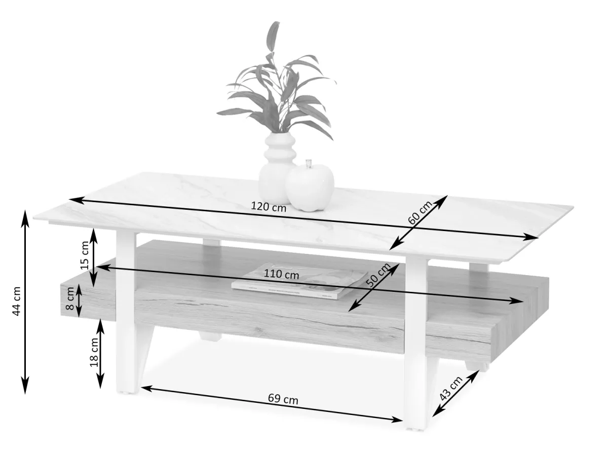 Konferenční stolek RUSLAN na první pohled zaujme svým mramorovým designem horní desky. Stolek nabízí také úložný prostor v podobě police pod horní deskou.