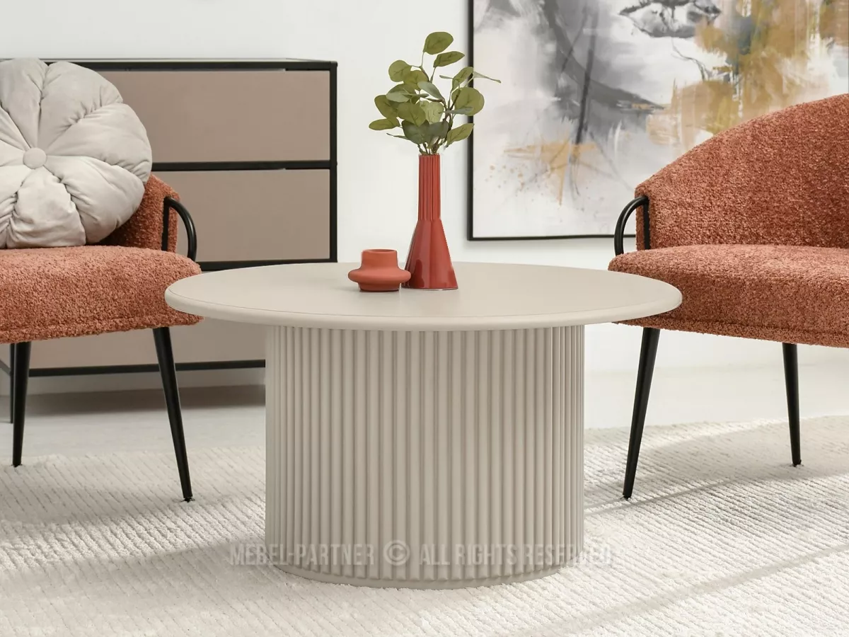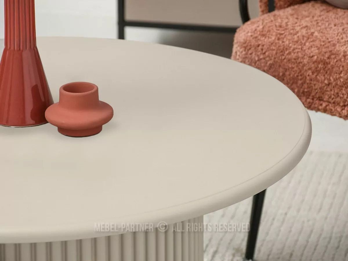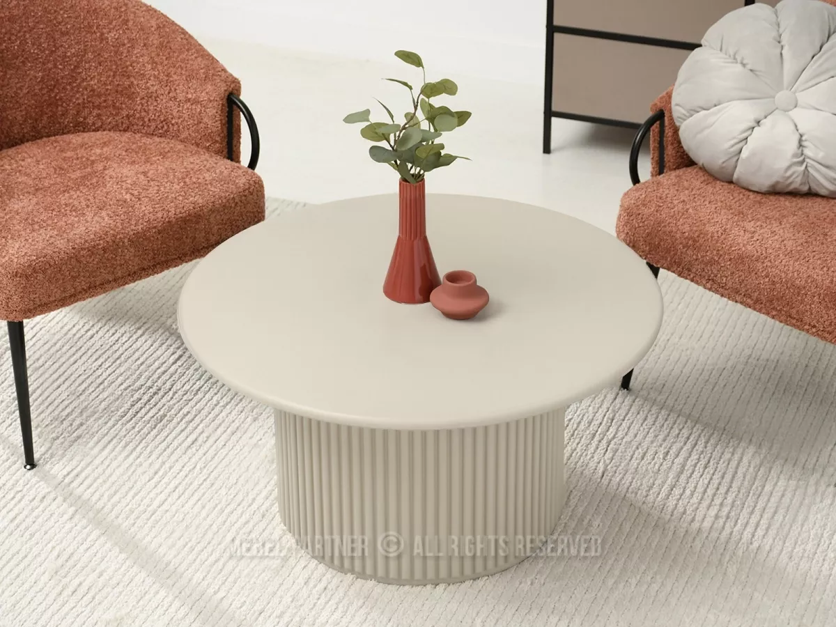 Kulatý konferenční stolek ALBAN spojuje eleganci s praktičností moderních materiálů. Podstava zaujme především svým drážkováním.