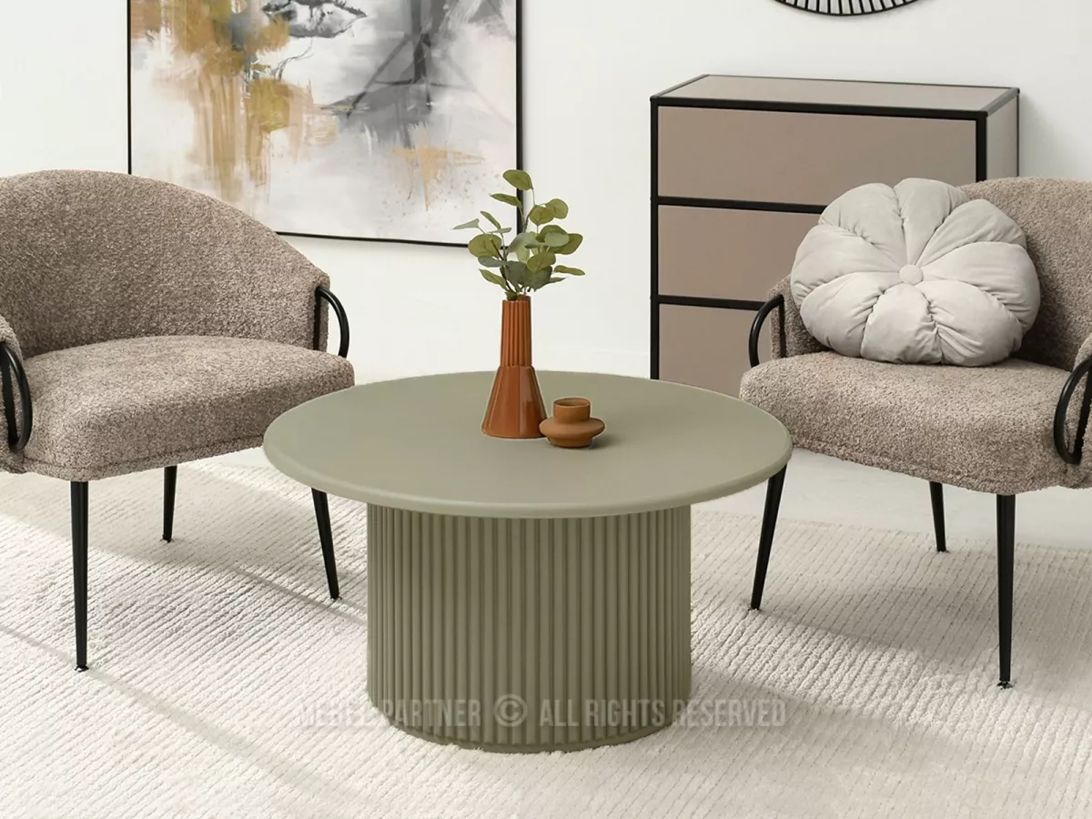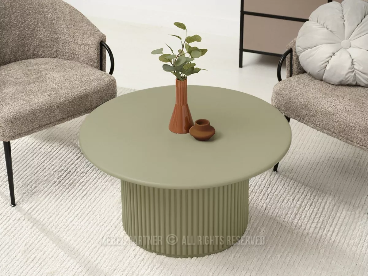Kulatý konferenční stolek ALBAN spojuje eleganci s praktičností moderních materiálů. Podstava zaujme především svým drážkováním.