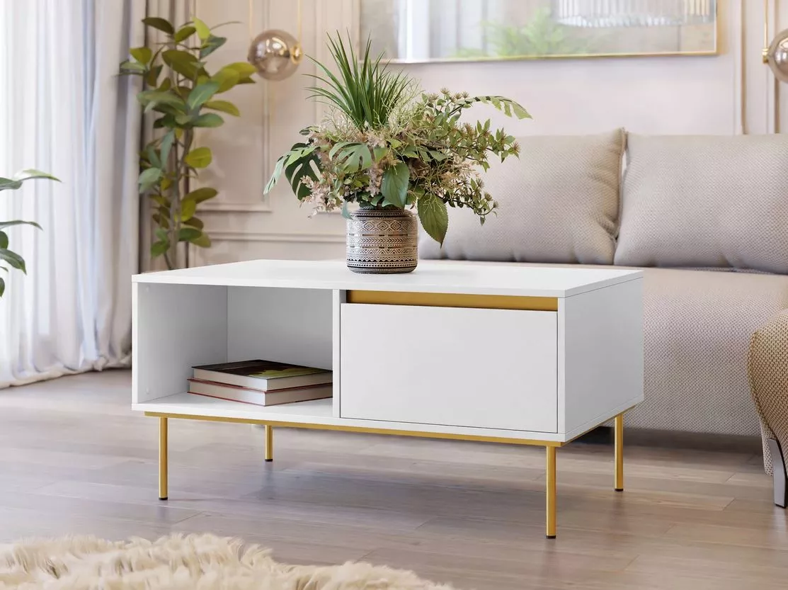 VÝPRODEJ - Konferenční stolek RAWIK - zlatý / bílý