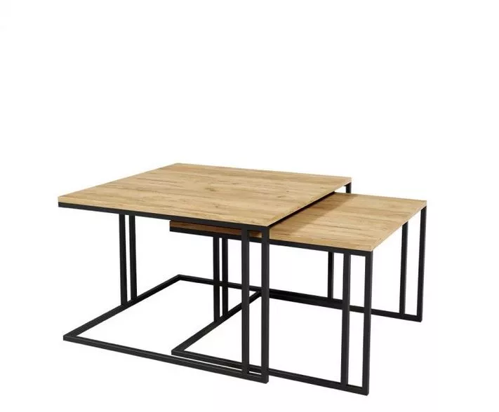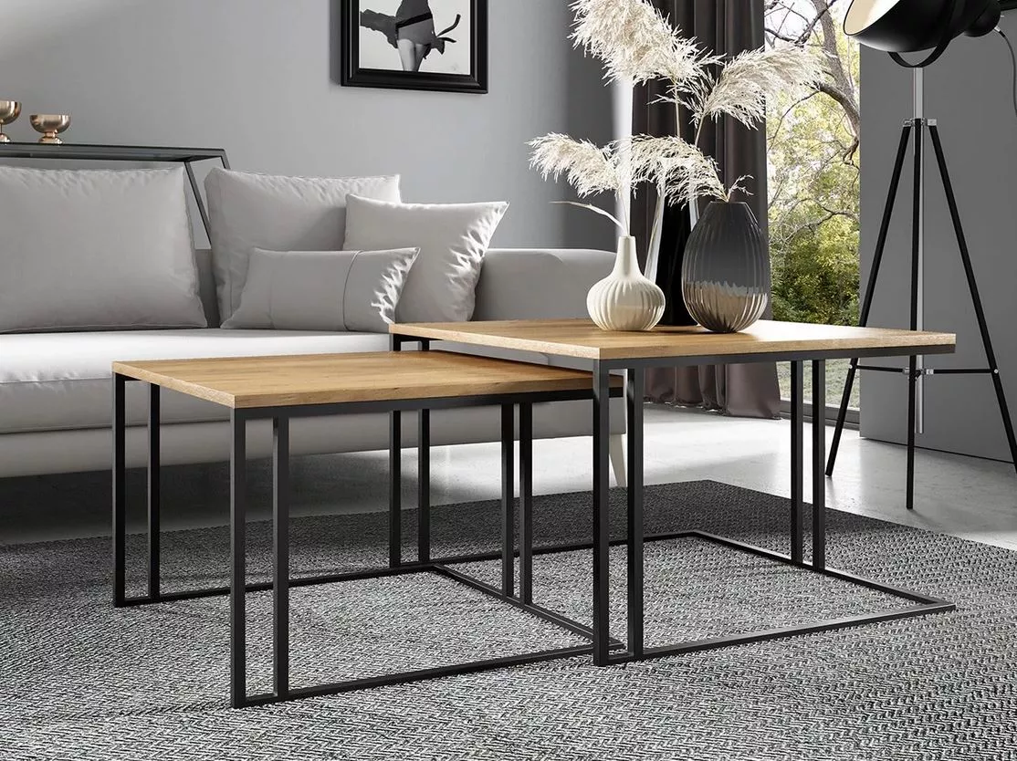 VÝPRODEJ - Set 2x konferenční stolek PTYSIA - černý / dub kraft zlatý