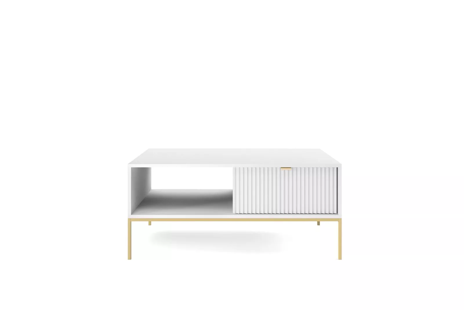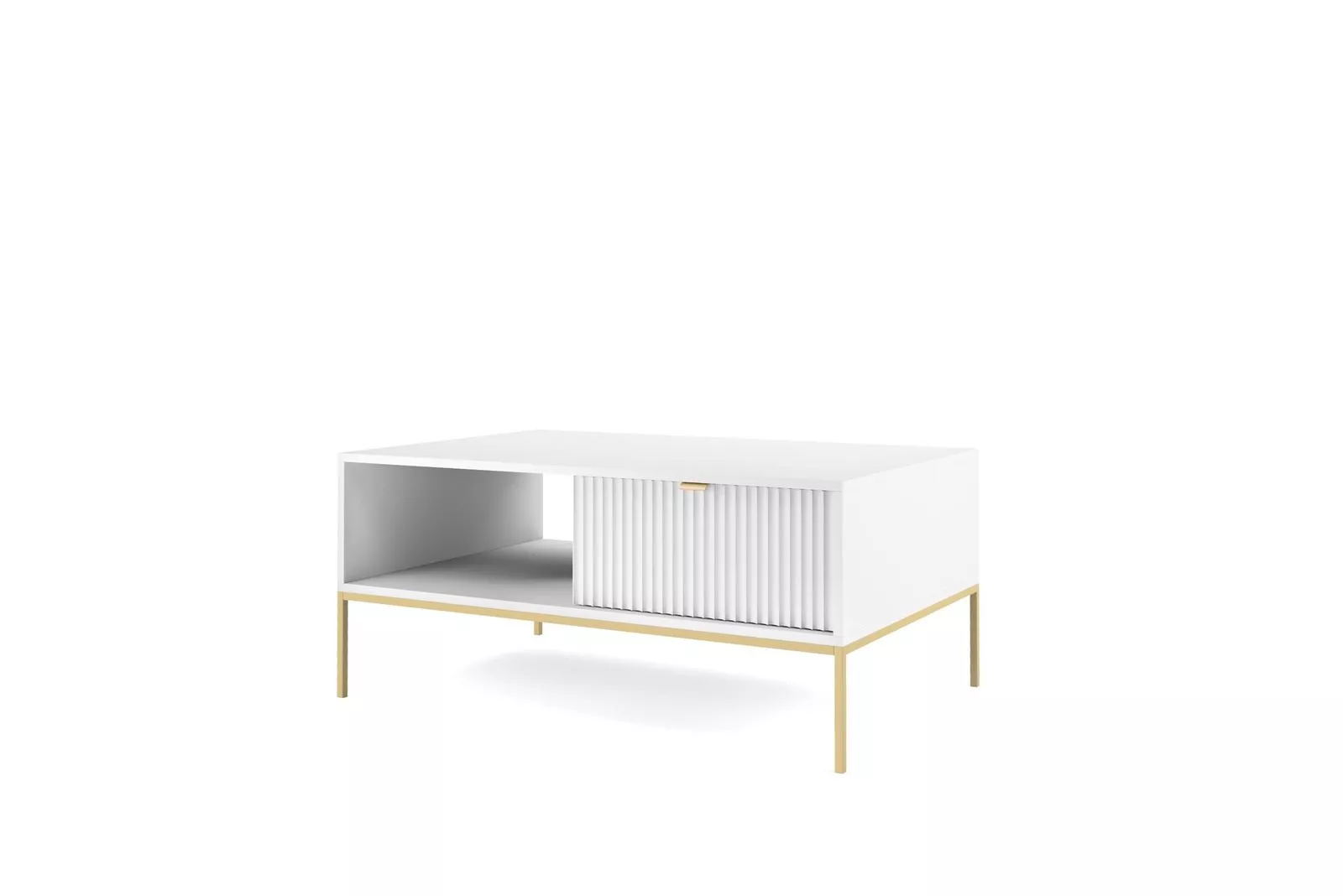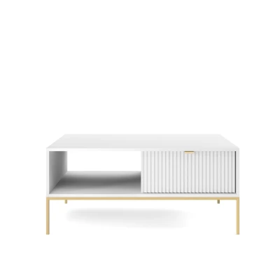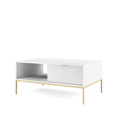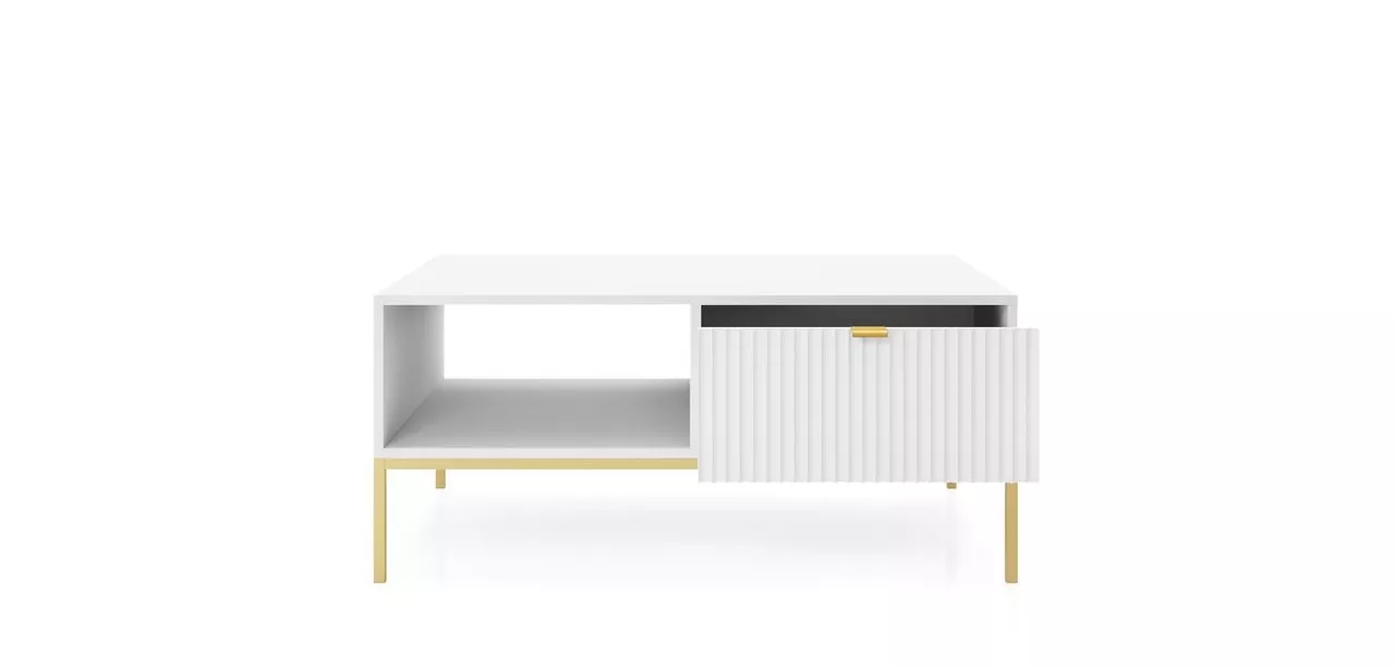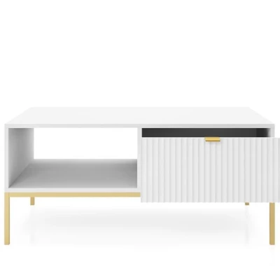 Konferenční stolek MISHEEL je charakteristický svým originálním designem v podobě drážkované přední části šuplíku. Disponuje šuplíkem, kde můžete vložit potřebné věci. Kovová podstava dodává stolku pevnost a stabilitu.