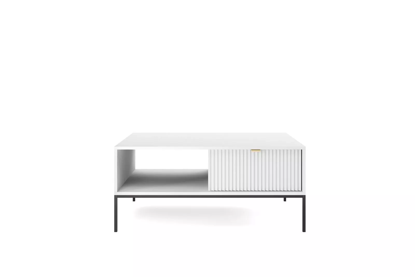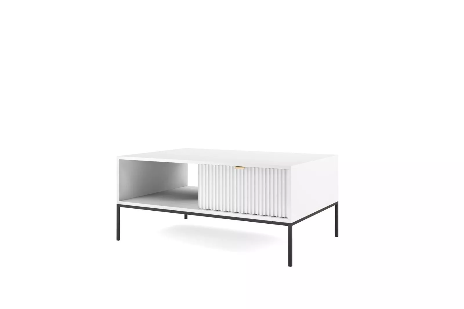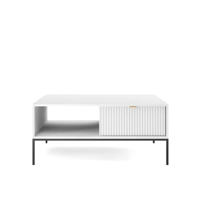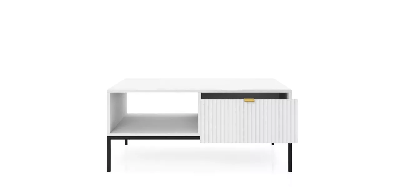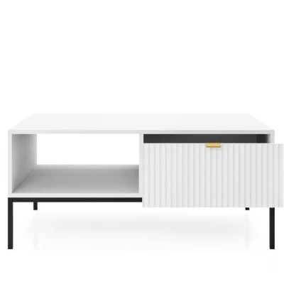 Konferenční stolek MISHEEL je charakteristický svým originálním designem v podobě drážkované přední části šuplíku. Disponuje šuplíkem, kde můžete vložit potřebné věci. Kovová podstava dodává stolku pevnost a stabilitu.