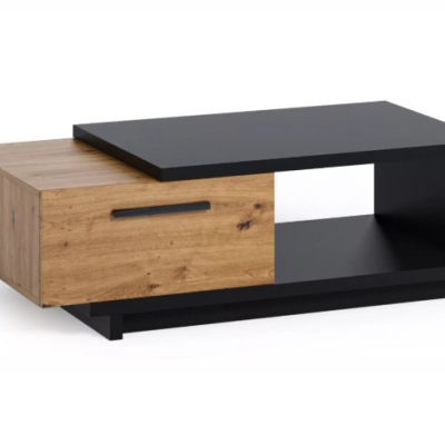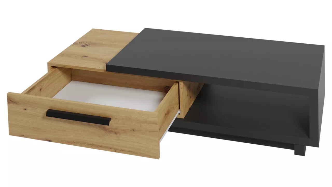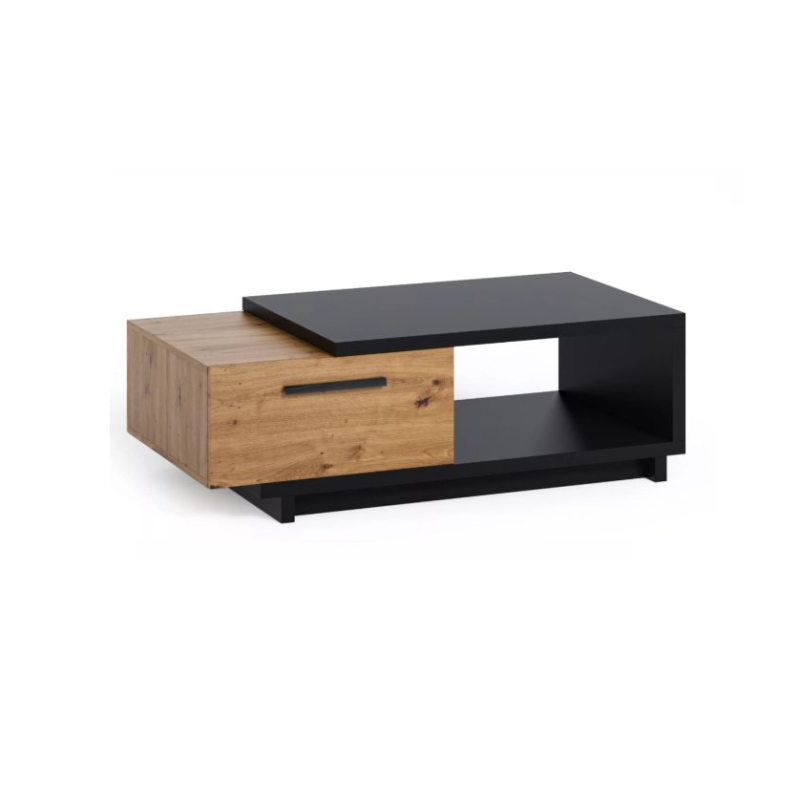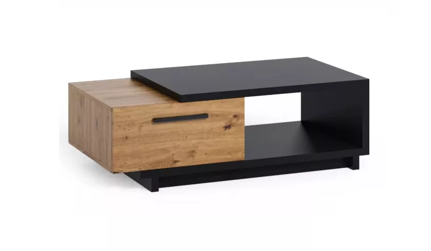 Konferenční stolek DELAWARE vypadá skvěle v každém moderním interiéru. Stolek má geometrický tvar, který se skládá ze dvou částí - horní části a šuplíku. Kromě šuplíku je úložný prostor umístěn také pod pracovní deskou. Kolekce nábytku DELAWARE je charakterizována kombinací nadčasové černé s napodobením struktury stromu, která se vyskytuje v teplé barvě řemeslného dubu.