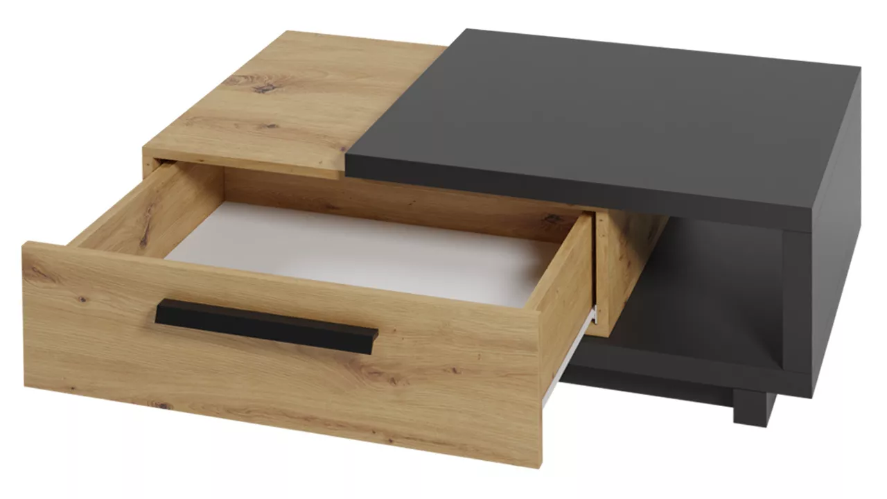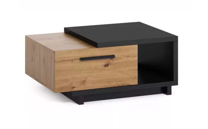 Konferenční stolek DELAWARE vypadá skvěle v každém moderním interiéru. Stolek má geometrický tvar, který se skládá ze dvou částí - horní části a šuplíku. Kromě šuplíku je úložný prostor umístěn také pod pracovní deskou. Kolekce nábytku DELAWARE je charakterizována kombinací nadčasové černé s napodobením struktury stromu, která se vyskytuje v teplé barvě řemeslného dubu.