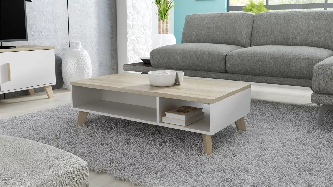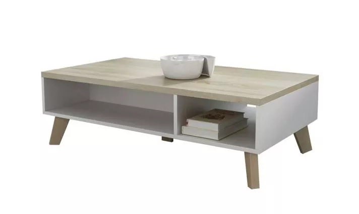 Konferenční stolek COLINA 1 je nepostradatelným prvkem obývacího pokoje. Stolek se vyznačuje vysokými dřevěnými nohami, které mu dodávají jedinečný charakter. Je stylovou kombinací bílé barvy, dřevěných nohou a světlého dřevěného vzoru, která do místnosti vnese závan čerstvého vzduchu a lehkosti.