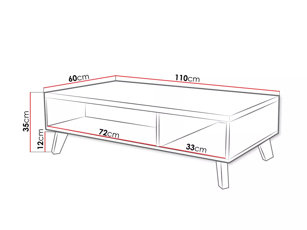 - nohy: dřevo, výška 12 cm