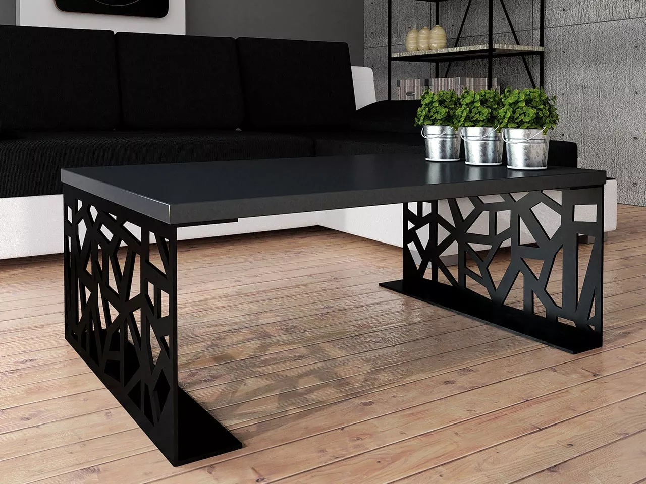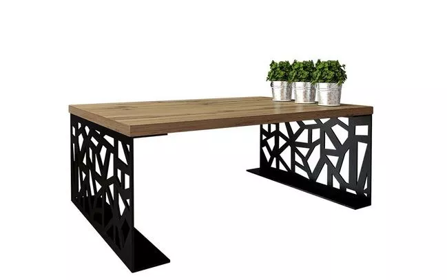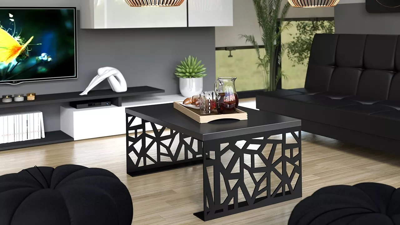 Moderní konferenční stolek DORLIP 1 v nadčasovém provedení je dekorativním a zároveň funkčním nábytkem do vašeho obývacího pokoje. Silná kovová základna je zdůrazněna černou matnou barvou, kterou doplňuje odolná LTD horní deska v černé barvě.