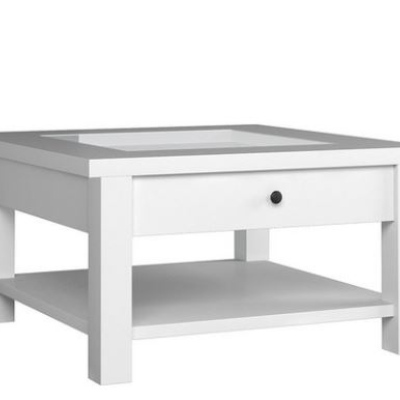 Elegantní konferenční stolek HUNGEN se vyznačuje částečně zasklenou stolovou deskou. Dostatek úložného prostoru vám zaručí polička a zásuvka s ozdobnou jemným kovovým úchytem.