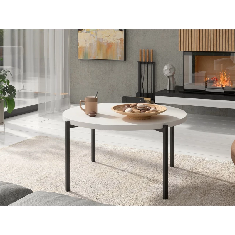 Konferenční stolek PASQUAL 1 je nepostradatelným kusem nábytku do obývacího pokoje. Kulatá a pevná horní deska o průměru 85 cm v kombinaci s kovovými nožkami tvoří mimořádně úhledný celek.