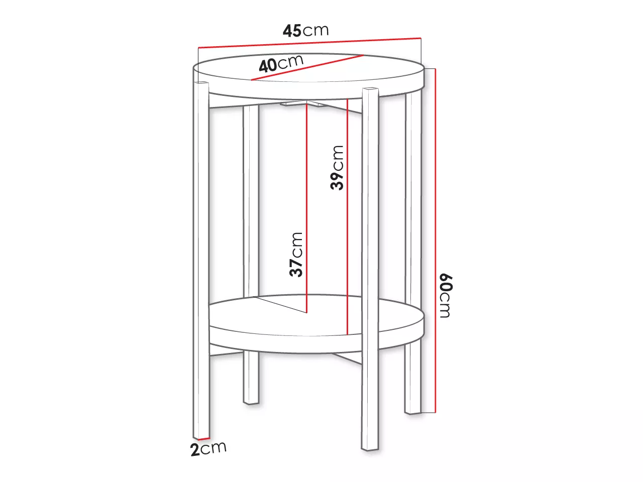 Konferenční stolek PASQUAL 4 je nepostradatelným kusem nábytku do obývacího pokoje. Kulatá a pevná horní deska o průměru 45 cm v kombinaci s kovovými nožkami tvoří mimořádně úhledný celek. Praktická polička umístěná pod horní deskou slouží k odložení časopisů a TV příslušenství.