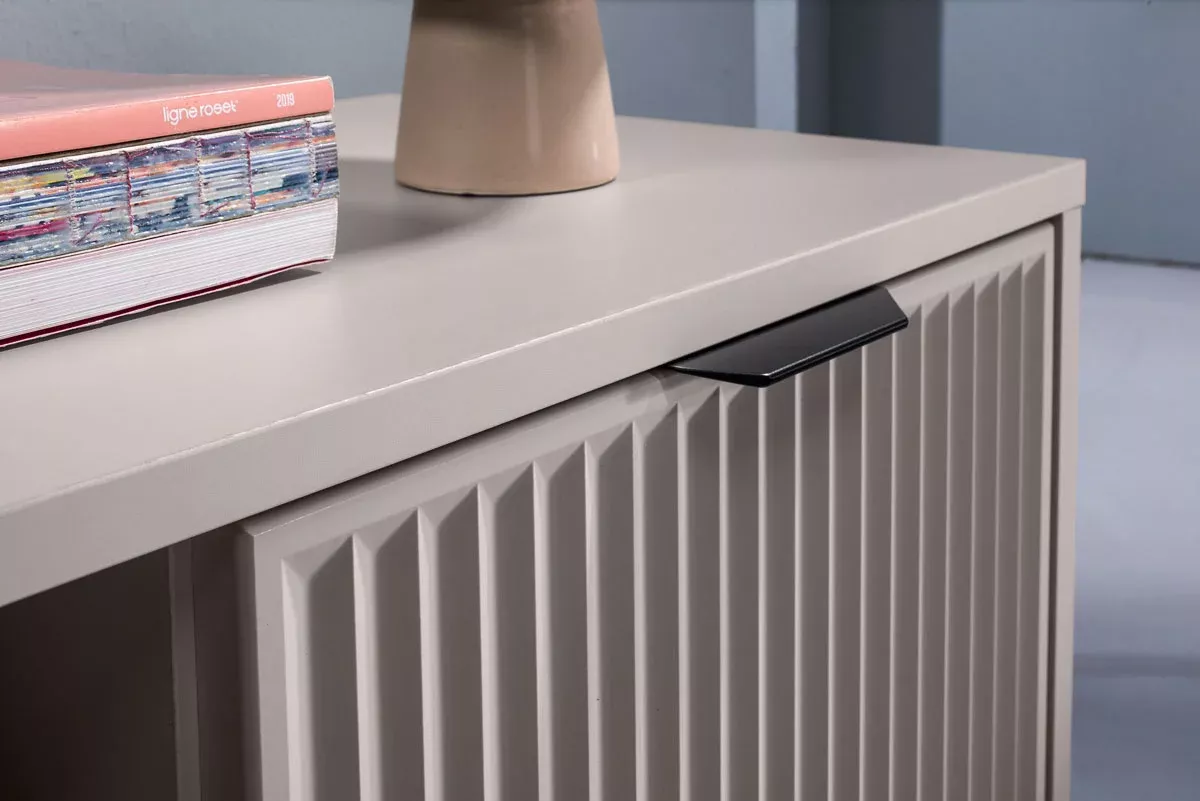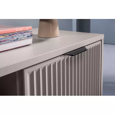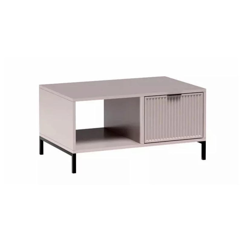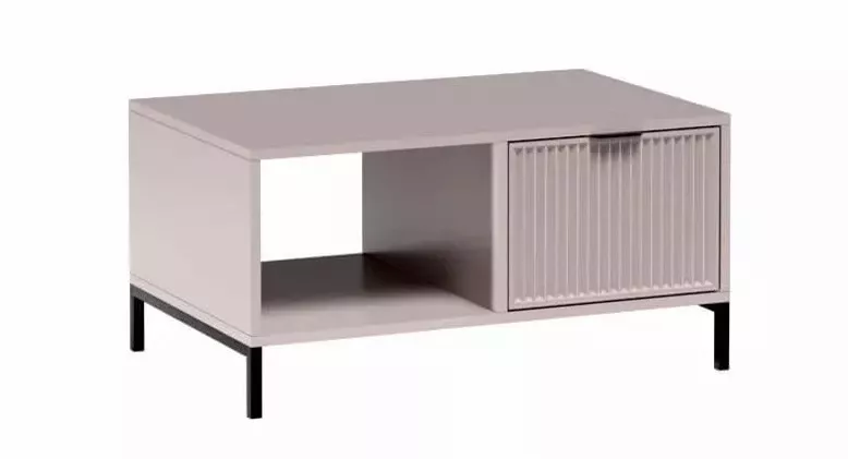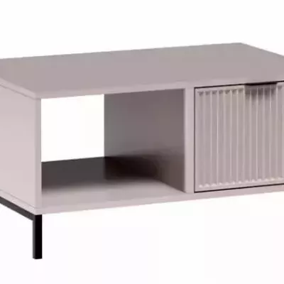 Vysoký konferenční stolek CORA se vyznačuje zajímavou zásuvkou s 3D texturou a jemnými úchyty. Stabilita stolku je založena na kovových nožkách.