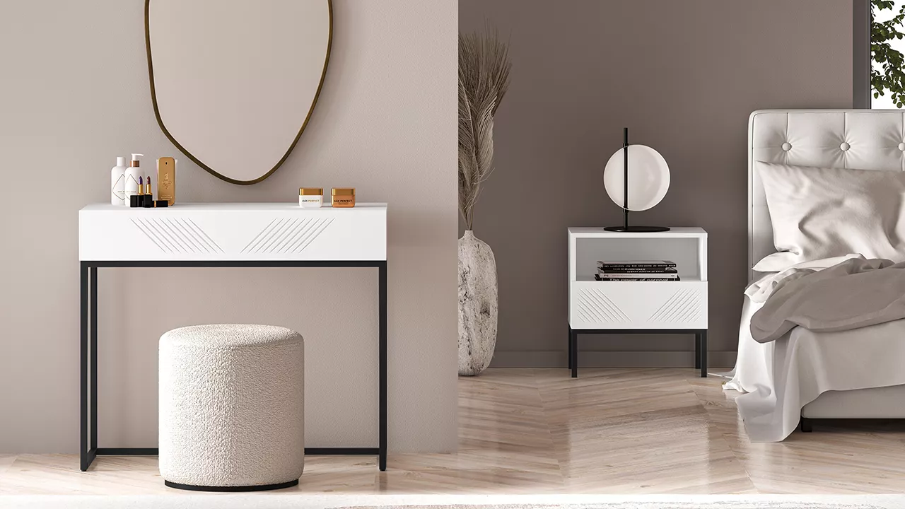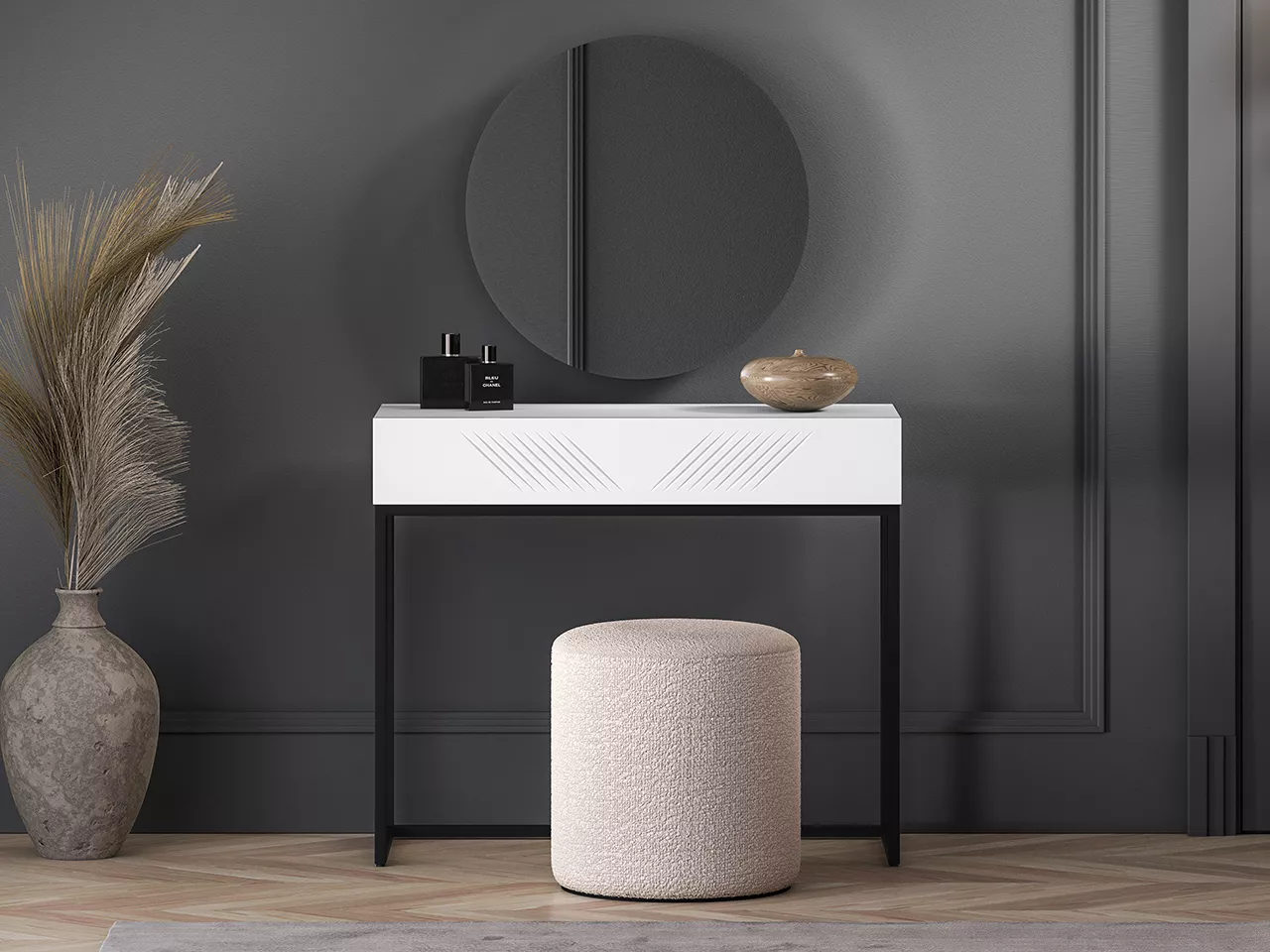 Konzolový stolek ADELE 3 zaujme především stylovým provedením. Stolek disponuje šuplíkem s plným výsuvem a otevíráním systémem „push to open“.