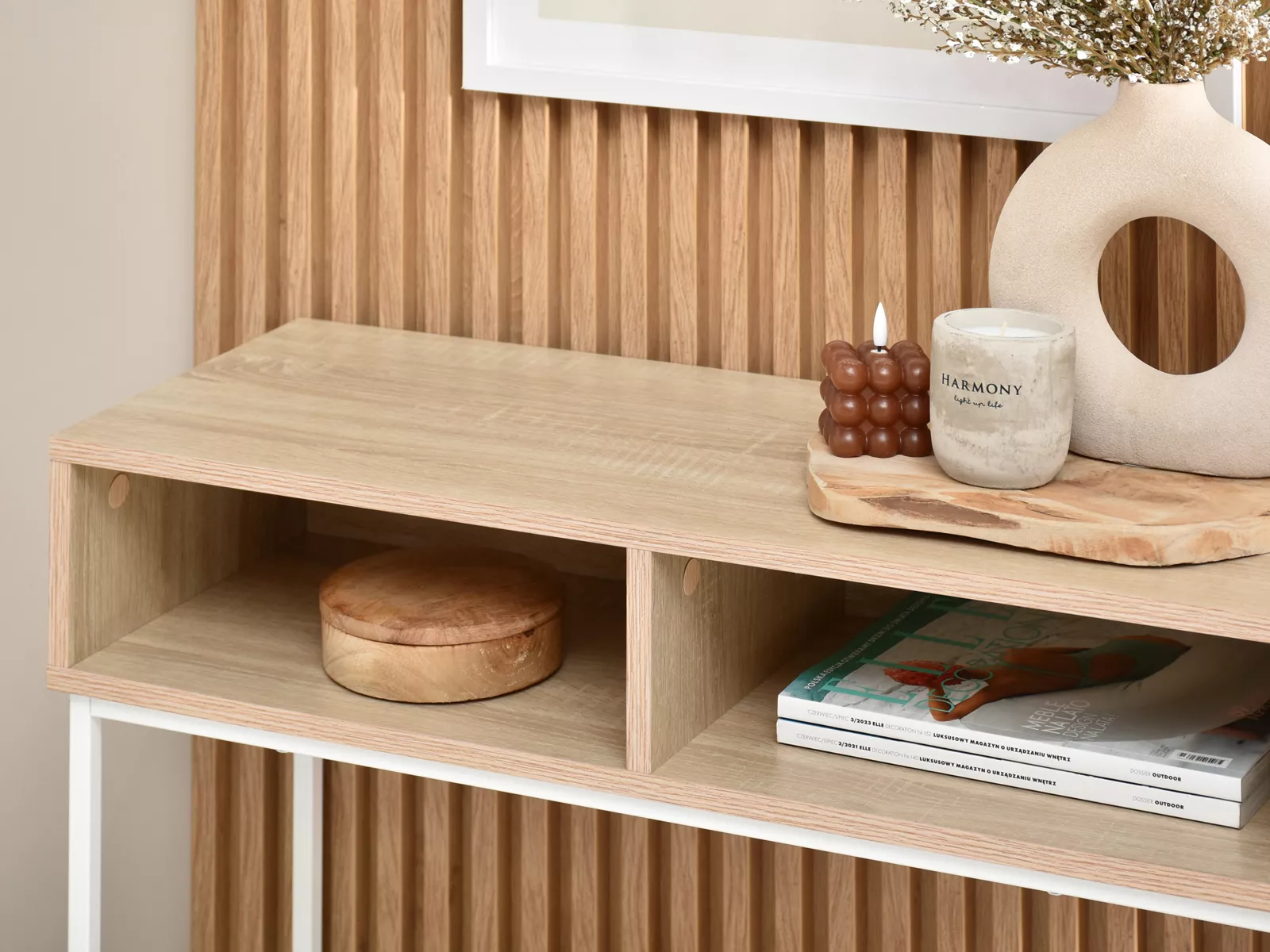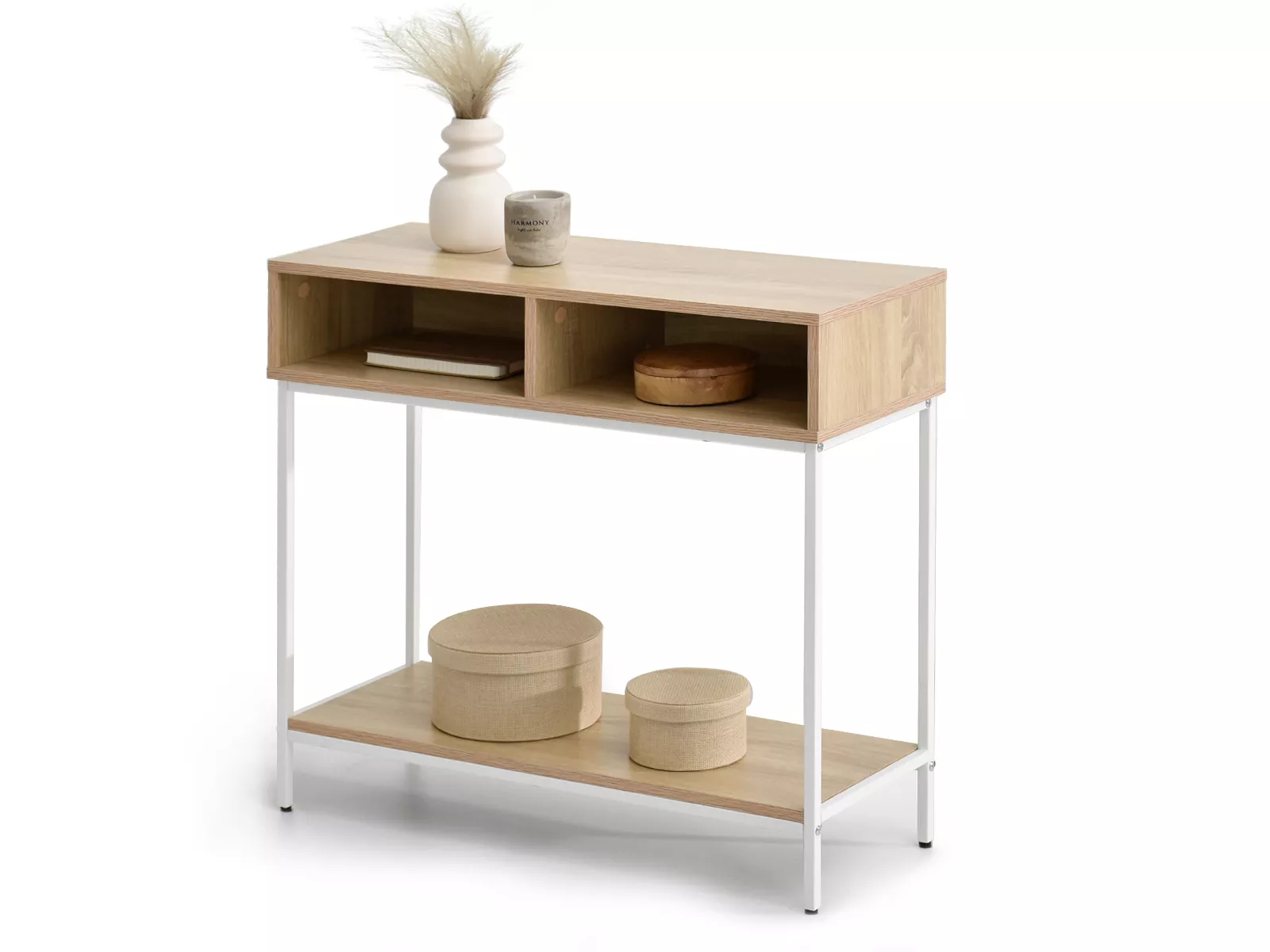 Konzolový stolek JIGME bude funkčním a dekoračním prvkem do vaší předsíně či obývacího pokoje. Součástí jsou 2 přihrádky.