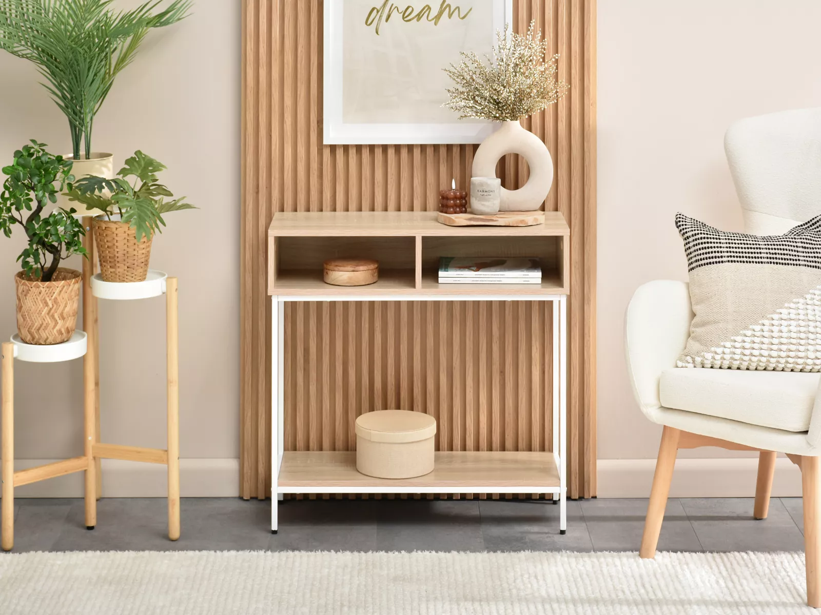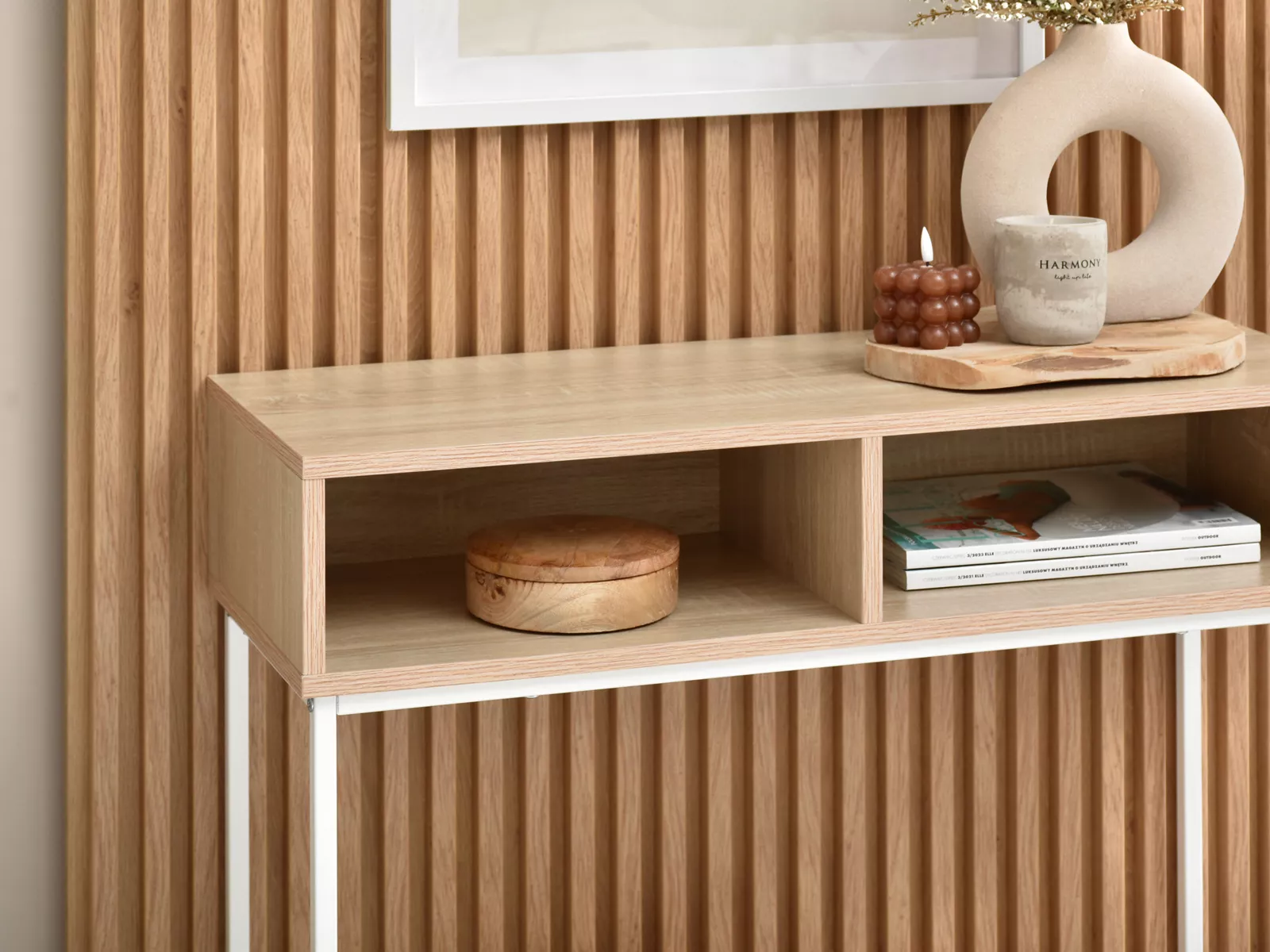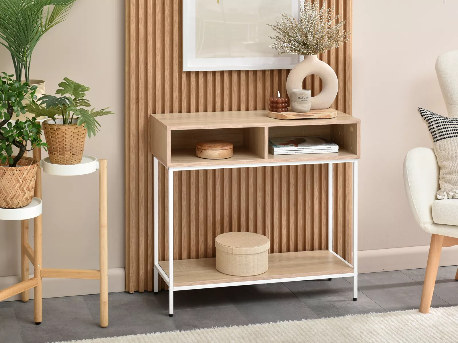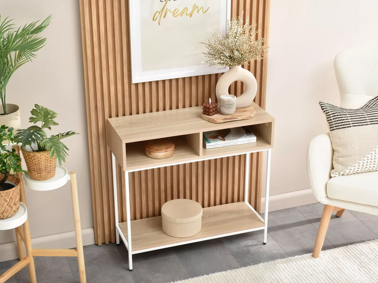 Konzolový stolek JIGME - bílý / dub sonoma