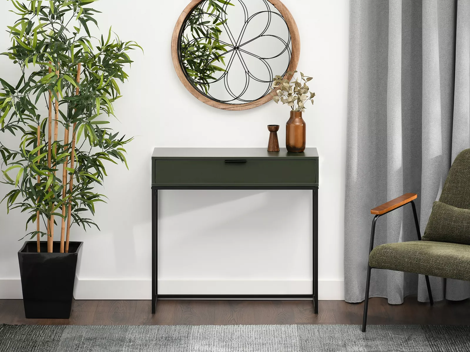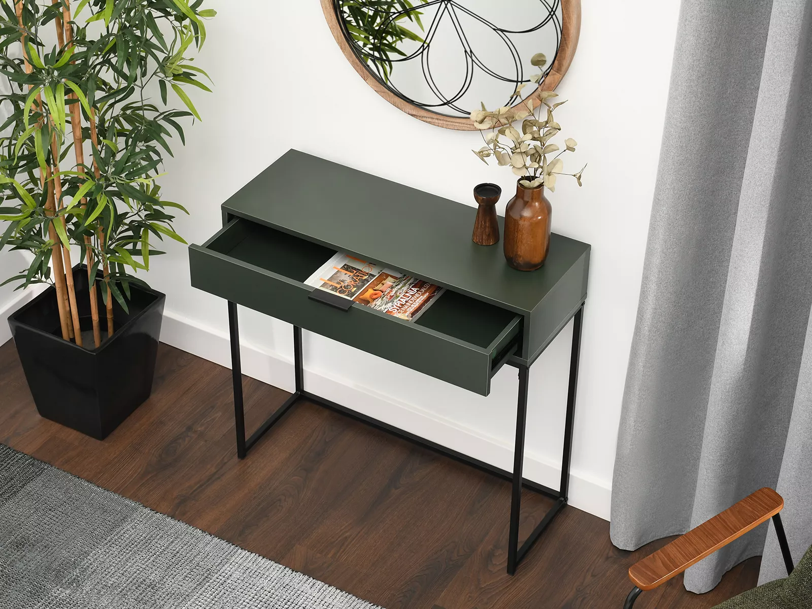 Konzolový stolek NIRAI se šuplíkem - černý / zelený