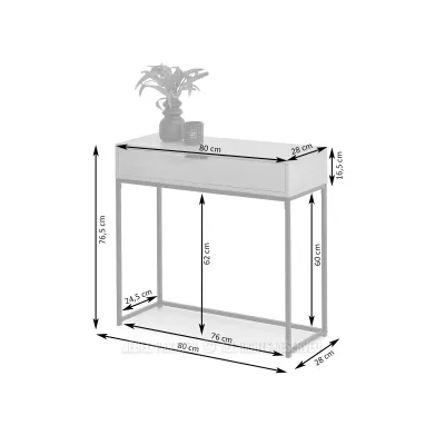 Konzolový stolek NIRAI se šuplíkem skvěle zapadne do interiéru vaší předsíně nebo obývacího pokoje. Díky úzkému designu se vejde i do malých místností a nabízí praktický prostor pro uložení věcí.