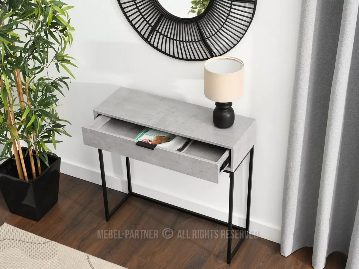 Konzolový stolek NIRAI se šuplíkem - beton / černý