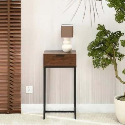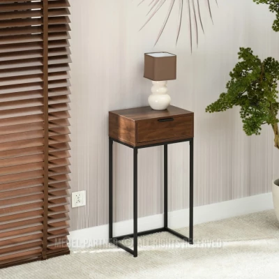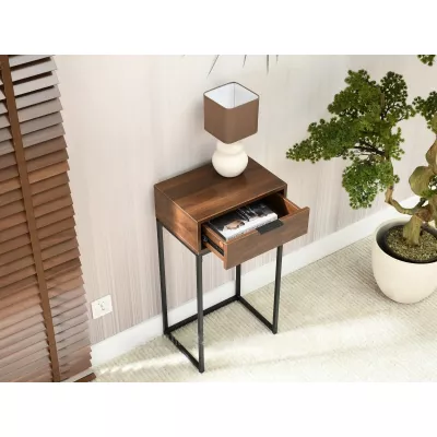 Úzký konzolový stolek NIRAI skvěle zapadne do interiéru vaší předsíně nebo obývacího pokoje. Díky úzkému designu se vejde i do malých místností a nabízí praktický prostor pro uložení věcí.