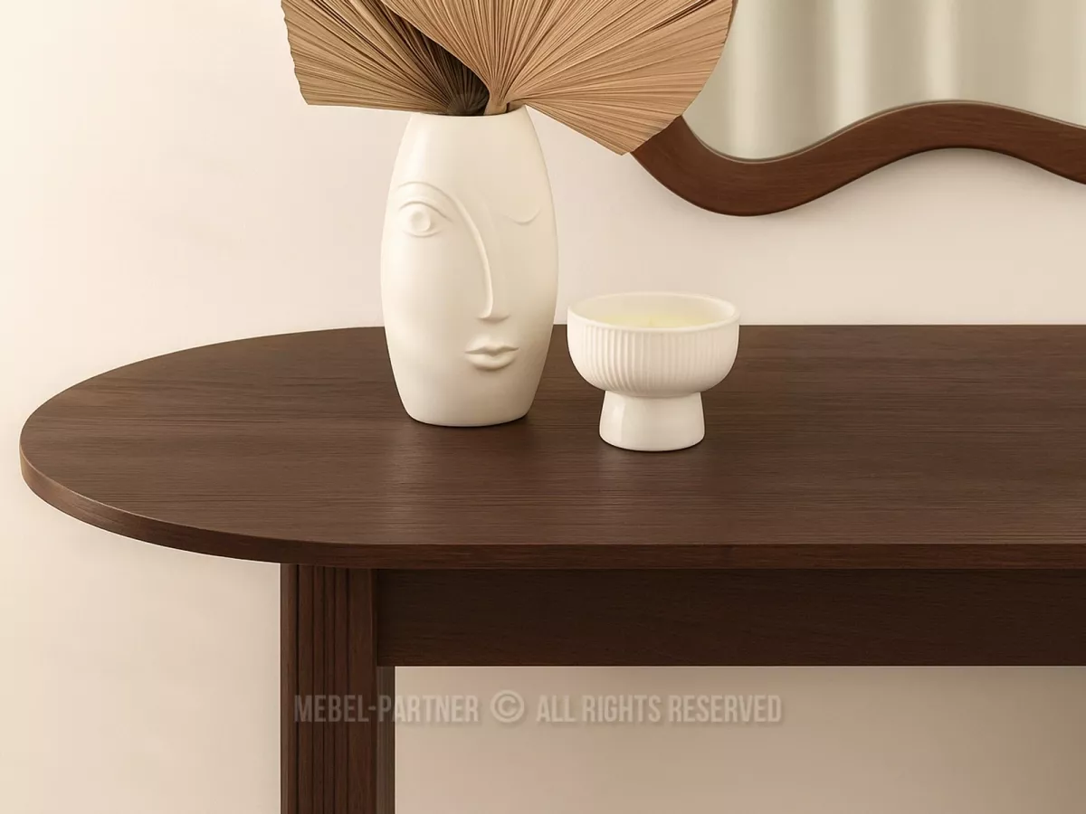 Konzolový stolek CENDRY najde své využití v předsíni pro odložení klíčů nebo jako toaletní stolek. Jeho dekor ořechu a jemná úprava nožek se perfektně hodí do moderních, skandinávských a minimalistických interiérů.