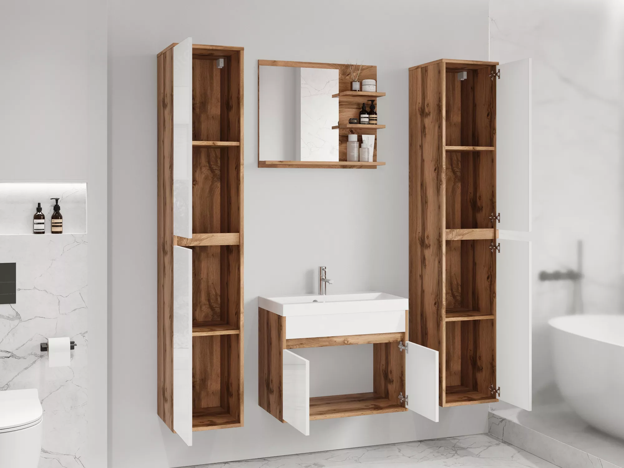 Maximalizujte prostor ve vaší koupelně s koupelnovou sestavou DENISON XL, která je navržena tak, aby splňovala vaše potřeby, a zároveň zapadala do trendů současného designu. Sestava se skládá ze skříňky pod umyvadlo, umyvadla, 2 závěsných vysokých skříněk a zrcadla s poličkou. Součástí sestavy je také sifon zdarma.