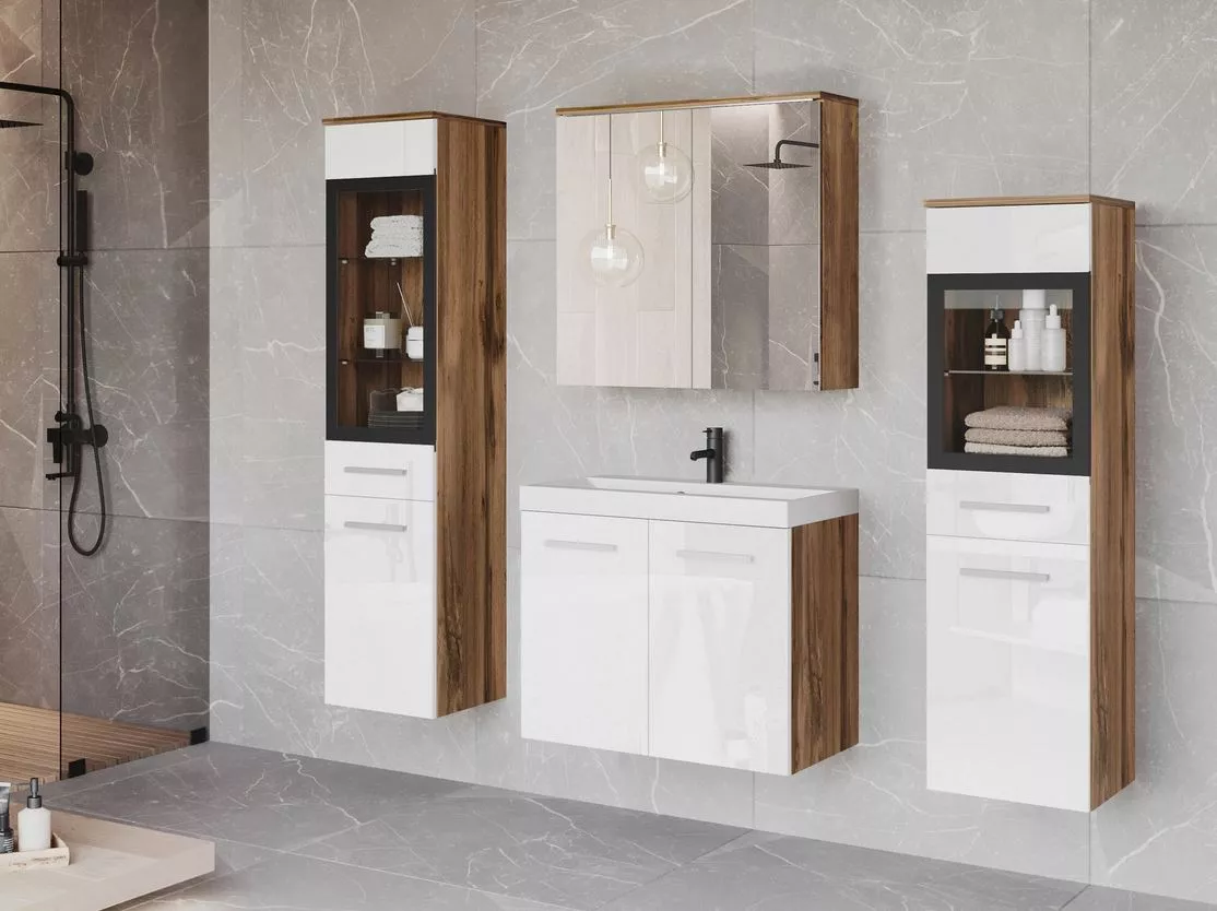 Koupelnová sestava YUKO 2 - dub wotan / lesklá bílá + sifon ZDARMA