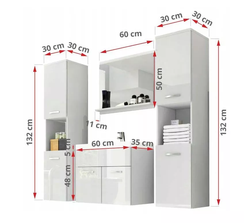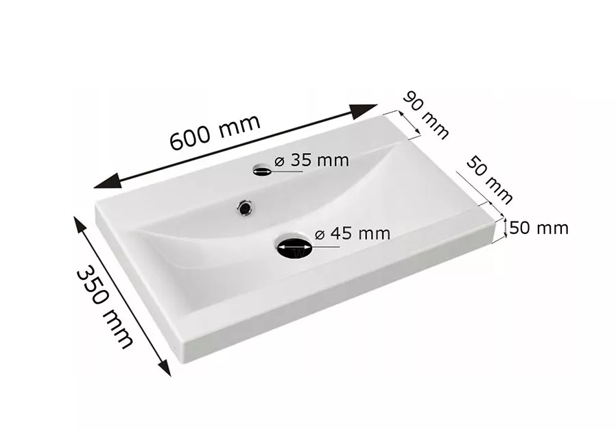 - skříňka pod umyvadlo: 60/47,5/35 cm