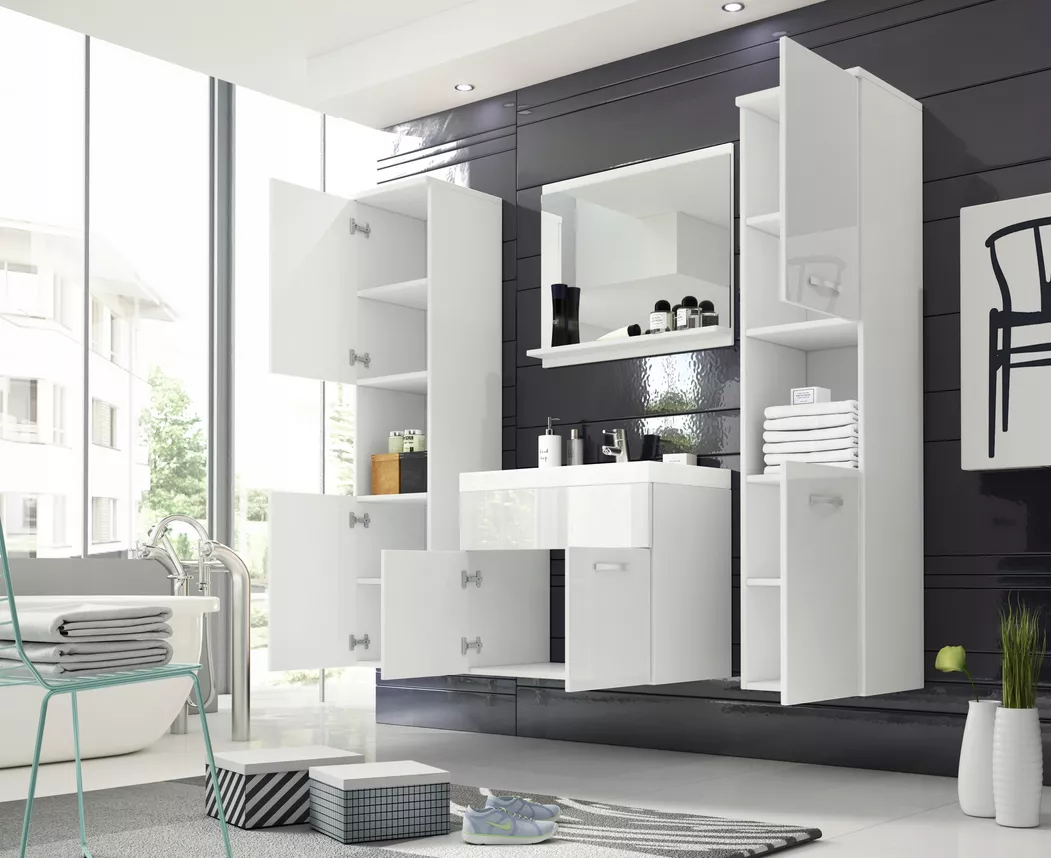 Koupelnová sestava MAYRA XL je závěsný koupelnový nábytek, který bude plnit nejen dekorativní funkci, ale díky svému velkému množství úložného prostoru do něj snadno uložíte čisticí prostředky a všechny drobnosti. Sestava je vyrobena z vysoce kvalitních materiálů odolných proti poškrábání a vlhkosti.